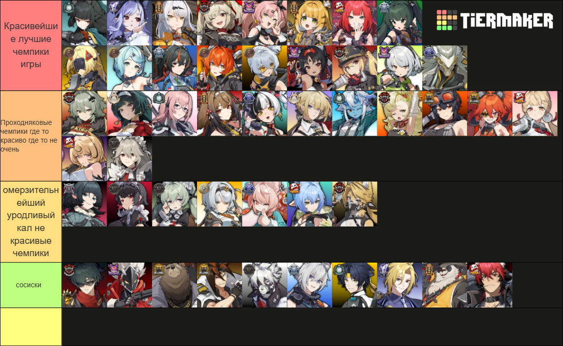 Ну вот чисто как бы по красоте чемпики тирлист всех тирлистов. Вы можете не соглашатся с первыми двумя тирами, все люди разные, и вкусы у всех разные. Но кто любит кал из двух нижних тиров абсолютный гавноед пидор собака не человек селюк даун.