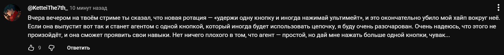 >>5987961 Не, в эндфилд он точно не срыгнет. Он ему вообще не зашел. В отличие от остальных крупных ру-гачастримеров, глиняный только 4 часа постримил положенные по рекламе, и больше не запускал ее. Это только всякие Аксы, Нюки и прочие заценили.
