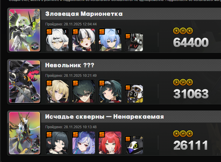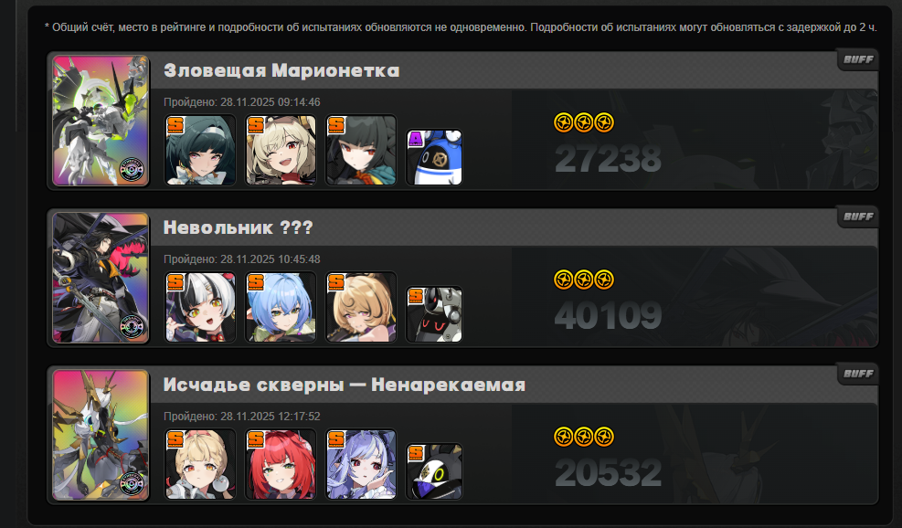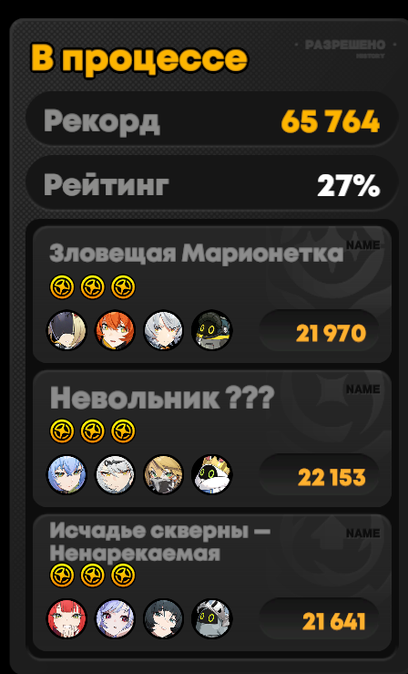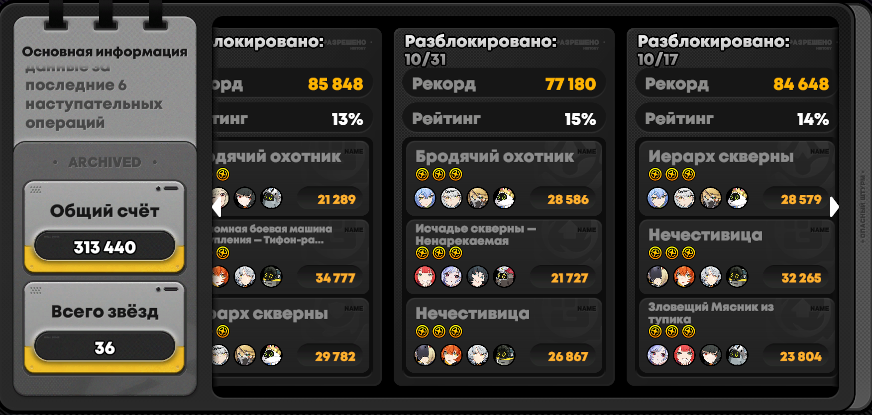 >>5984601 Ну у меня последний уровень мира ещё не повышен. Персонажей выше 50 уровня и 9 навыков прокачать не могу. Штурм после многих ретраев на 5 звёзд получилось закрыть. Шиюй до 5 этажа всё S, 6й A, 7й B (пол минуты не хватает).