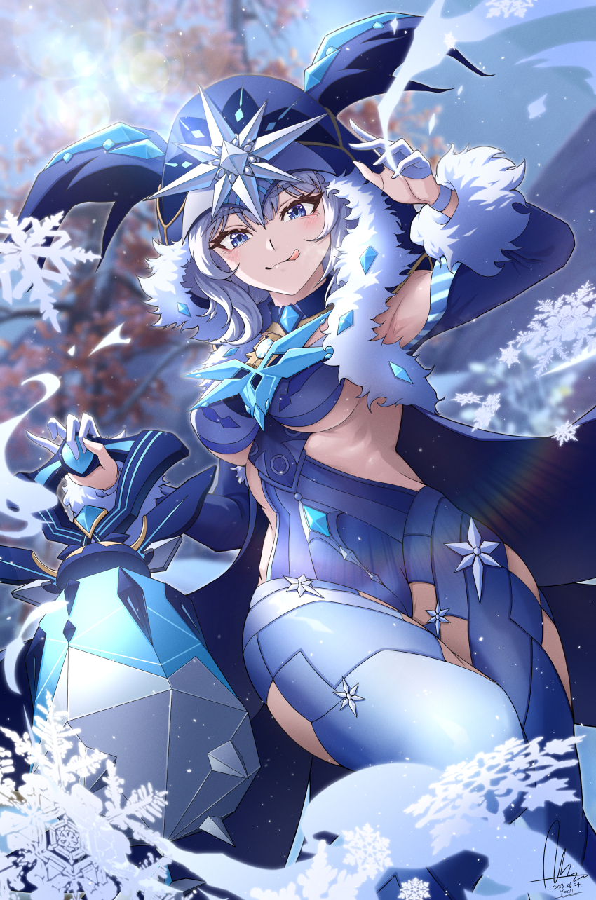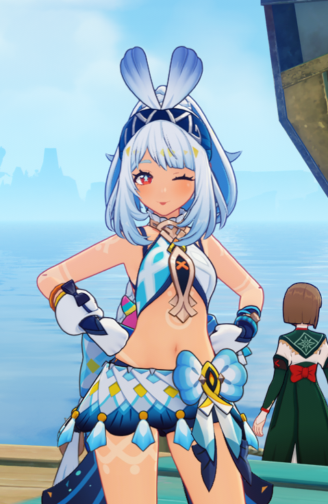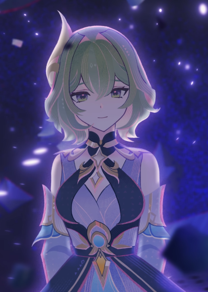 Эмм, а кого? Я что-то не особо догоняю. Мону, что-ли? Она вроде тоже в синем костюме и с плащом, а ещё попный образ похож. Но всё равно не совсем уверен в догадке