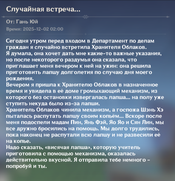 >>5986006 Это очередной пример хуёвого повествования, чел. Её квест вообще не коррелирует с тем, что я наблюдал последние несколько часов на экране. Его вставили сюда лишь по причине того, что её баннер был в текущем патче, и Ляо решил загонять игроков насильно проходить квесты легенд. Это блять всё равно что прямо сейчас начать на полтора часа историю Варки, просто потому что он появился в сюжете этого патча. Связи с текущим конфликтом между командой Светки и Рери вообще никакой.