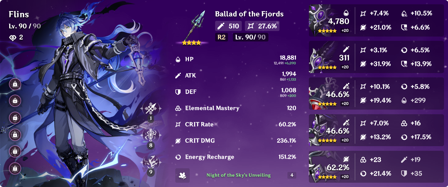 Winds of Rising Time 2 Set: ATK +18%. 4 Set: After Normal Attacks, Charged Attacks, Elemental Skill, or Elemental Burst hit an enemy, gain “Blessing of Wind and Ballad” for 6s: ATK +25%. If the wearer has completed “Witch’s Homework”, the effect upgrades to “Resolve of Wind and Ballad”, additionally increasing the wearer’s CRIT Rate by 20%. This effect can still trigger even when the wearer is off-field.