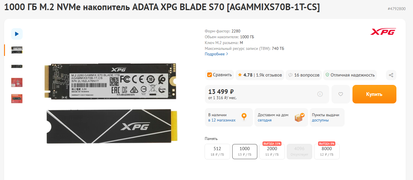 >>5990859 У тебя устаревшая информация. Сейчас память, как оперативная так и для хранения, стоит в 20 раз дороже из-за того, что дата центры генерящие нейрокал все скупают.