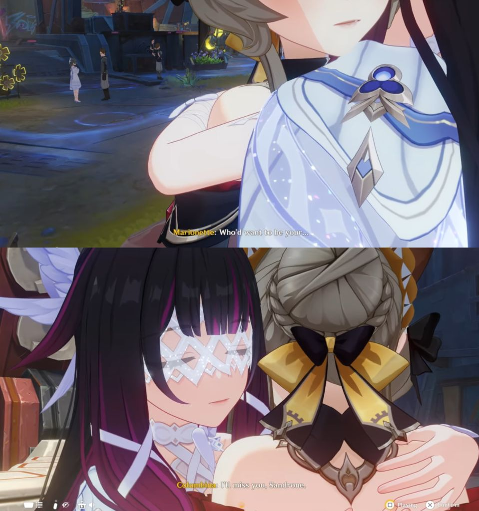 За 3 патча Нод Края у нас юри взаимодействий больше чем за 6 лет жо этого. Ляо прям пэйрит девочек. Даже Лену к Нефер немного подвёл.