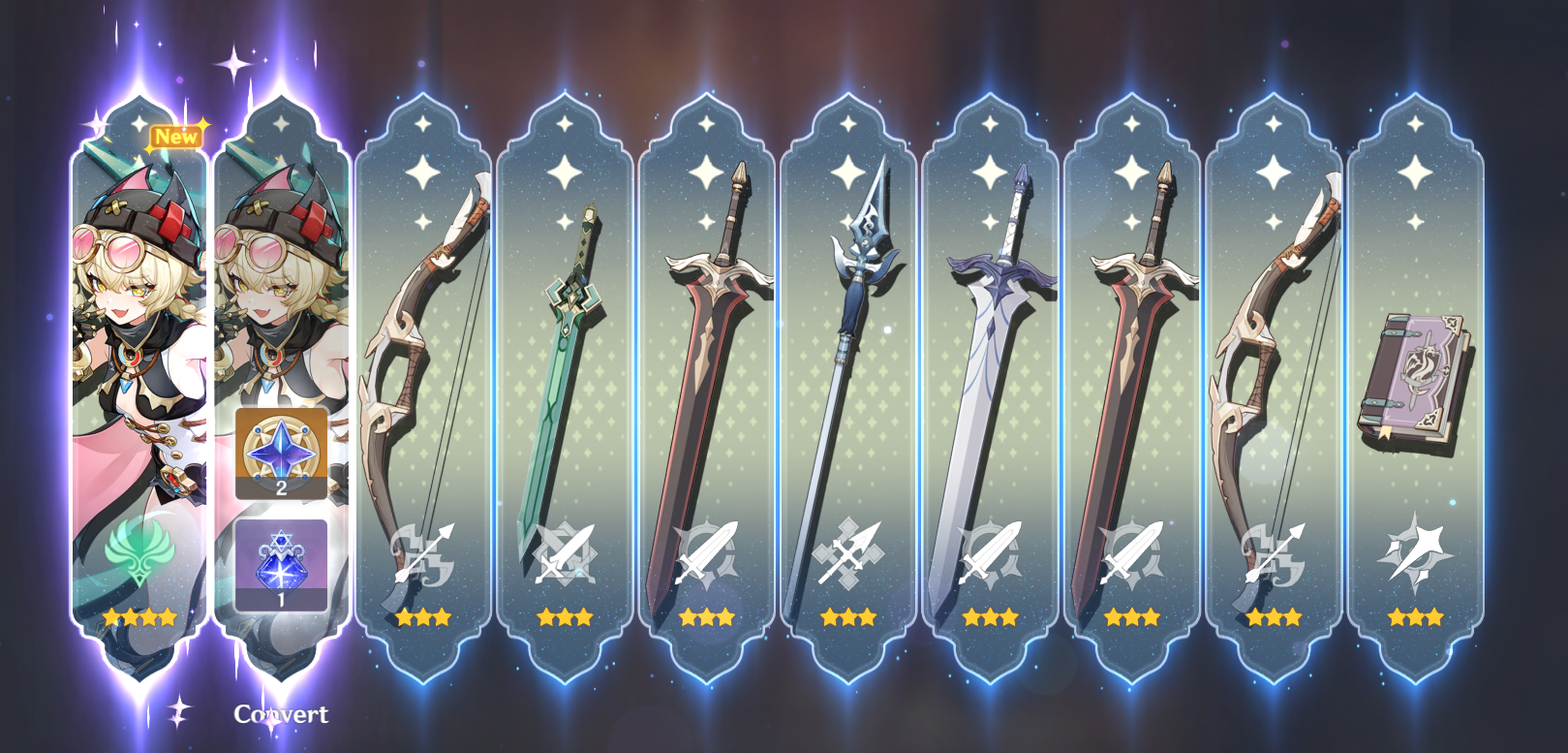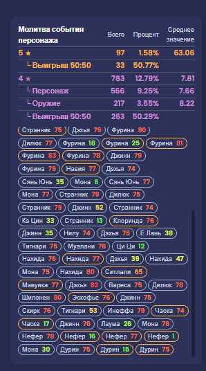 тут есть те кто прям ВСЕХ новых персов забирал начиная с Инеффы? Сколько не кручу, почти каждый из них упал, не думал что буду испытывать острую нехватку книжек и моры, даже как-то уже плохо от такой "удачи"