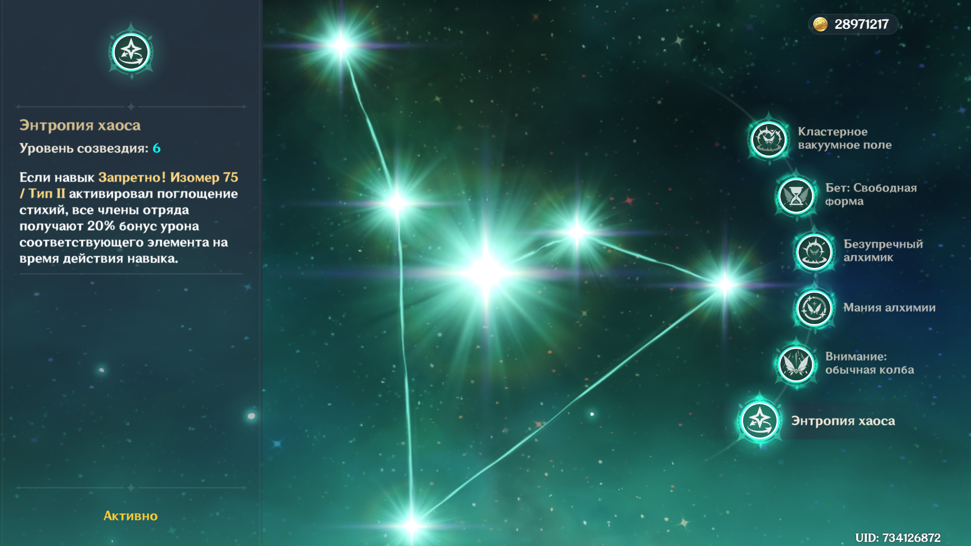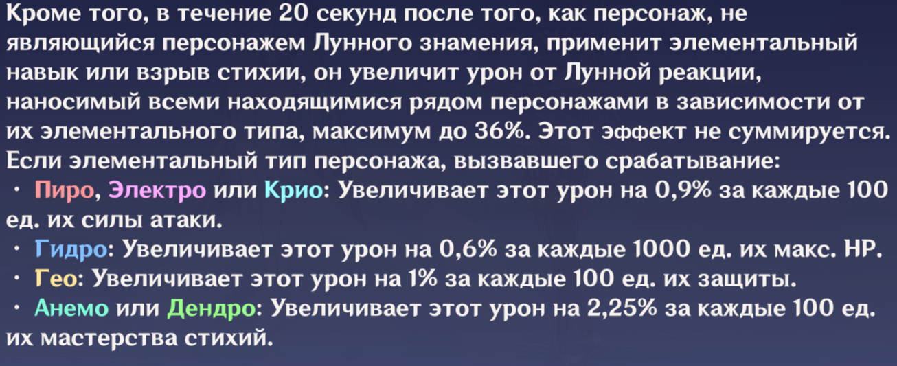 > Если навык Запретно! Изомер 75 / Тип II активировал поглощение стихий, все члены отряда получают 20% бонус урона соответствующего элемента на время действия навыка.