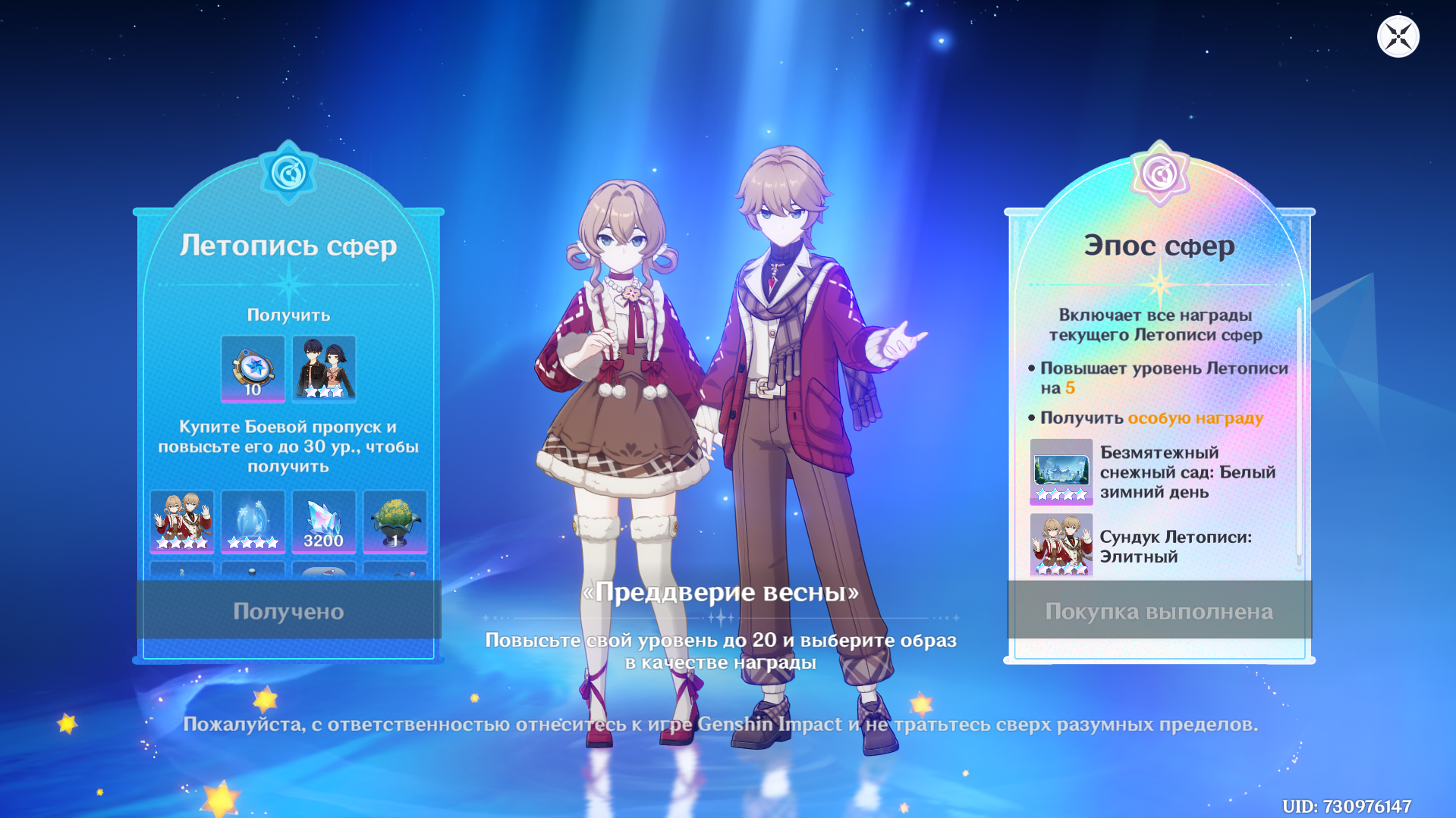 >>5992334 Я, кстати, в прошлом патче купил обычный БП в Геншине, а потом зашёл в Милиастру, а там дали БП в подарок. Успел нафармить только 8 уровней. Чувствую упущенную выгоду. Ляо умеет подсаживать на крючок гачи.