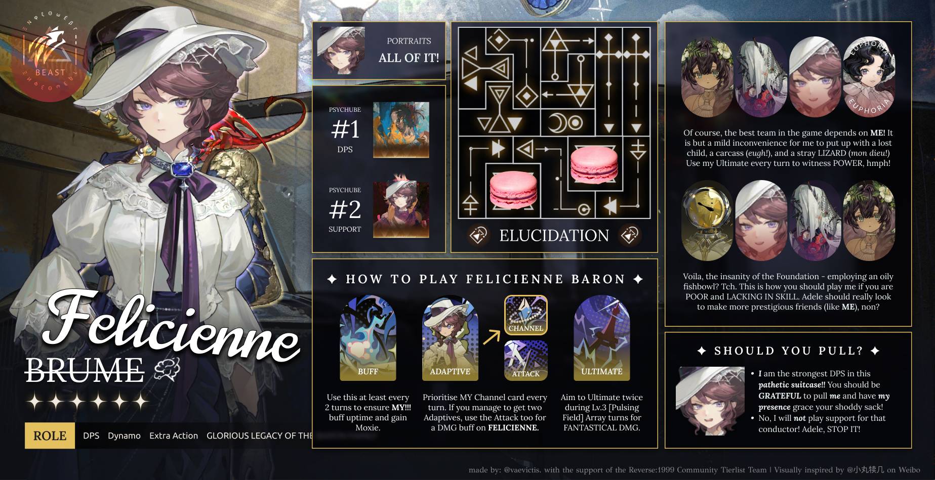 Тирлист персонажей, архетипов и составление команд: https://docs.google.com/spreadsheets/d/1e46cecjsIb1LO3Ybb6urlVUZKUk8R7yrgG9yXZS8-Ho