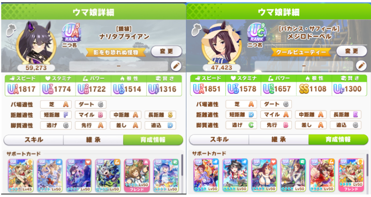 >>6046373 Хорошие бери, плохие не бери. А вообще заходи на gametora.com, переключай версию на глобал и смотри. Учитывай, что длительность указана на 1000 метров и пропорциональна дистанции (т.е. в два раза дольше, например, для 2000 метров).