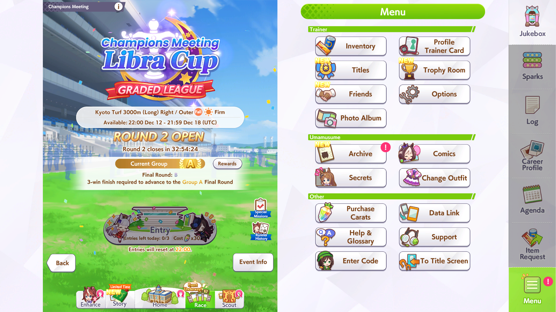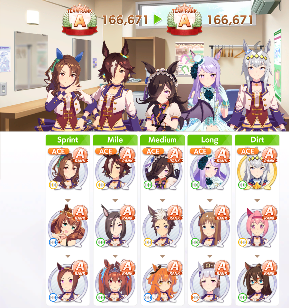 >>6053407 >Но я просто не могу понять какие кнопки жать... Как я понимаю тут даже нету "левелов" которые можно прокачать чемпиону Ну какое-то подобие лвлов здесь есть, оно правда называется рангом и складывается от твоих статов и скиллов, от G до SS, считай 1й уровень чара и 17й. Прокачиваешь этот уровень с помощью саппорт карточек (можешь по началу автовыбор ставить и пробовать так) в карьере URA (режим обучения) или Unity cup (чуть продвинутая карьера), можешь по началу автовыбор ставить и пробовать так. Тебе надо сделать работающую лошадь у которой должно быть много скорости и достаточно стамины, чтоб добежать до финала, а для этого надо жать соответствующие тренировки
