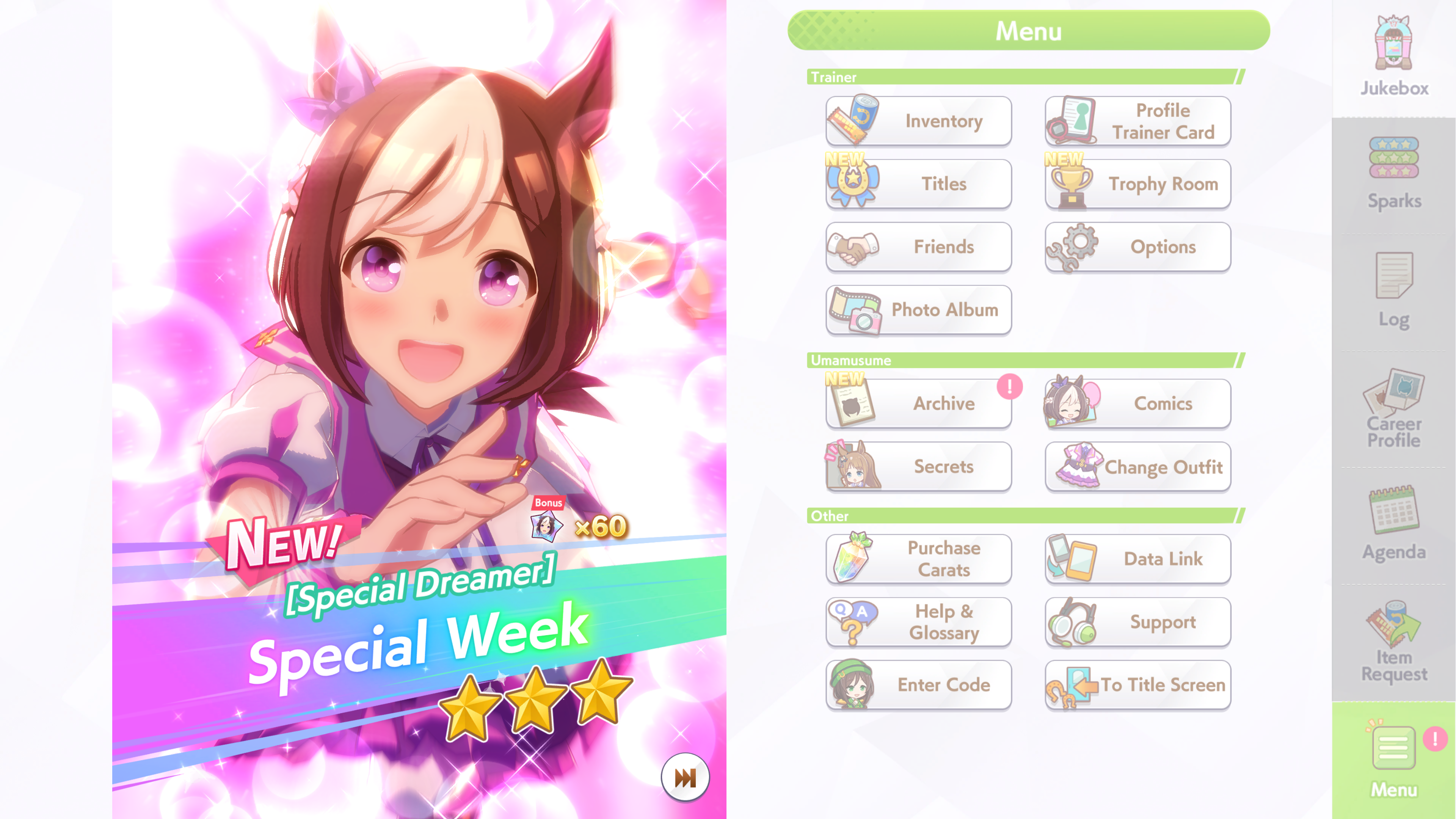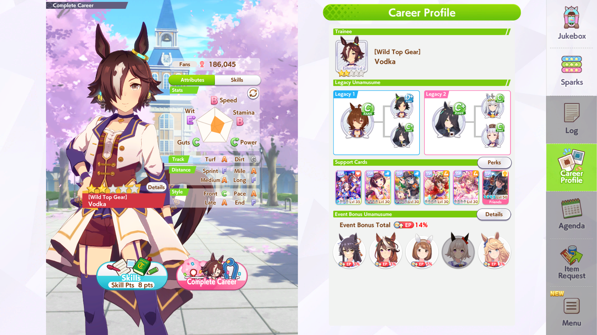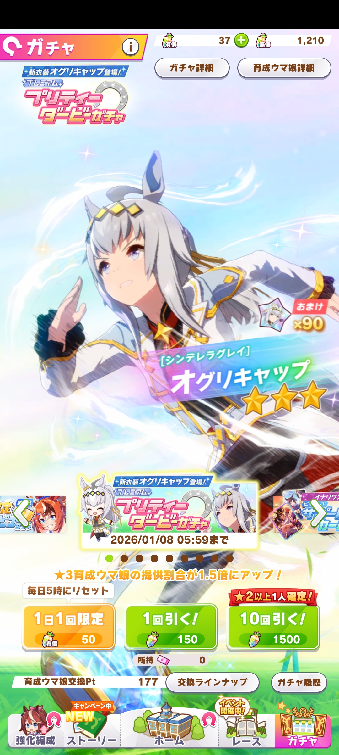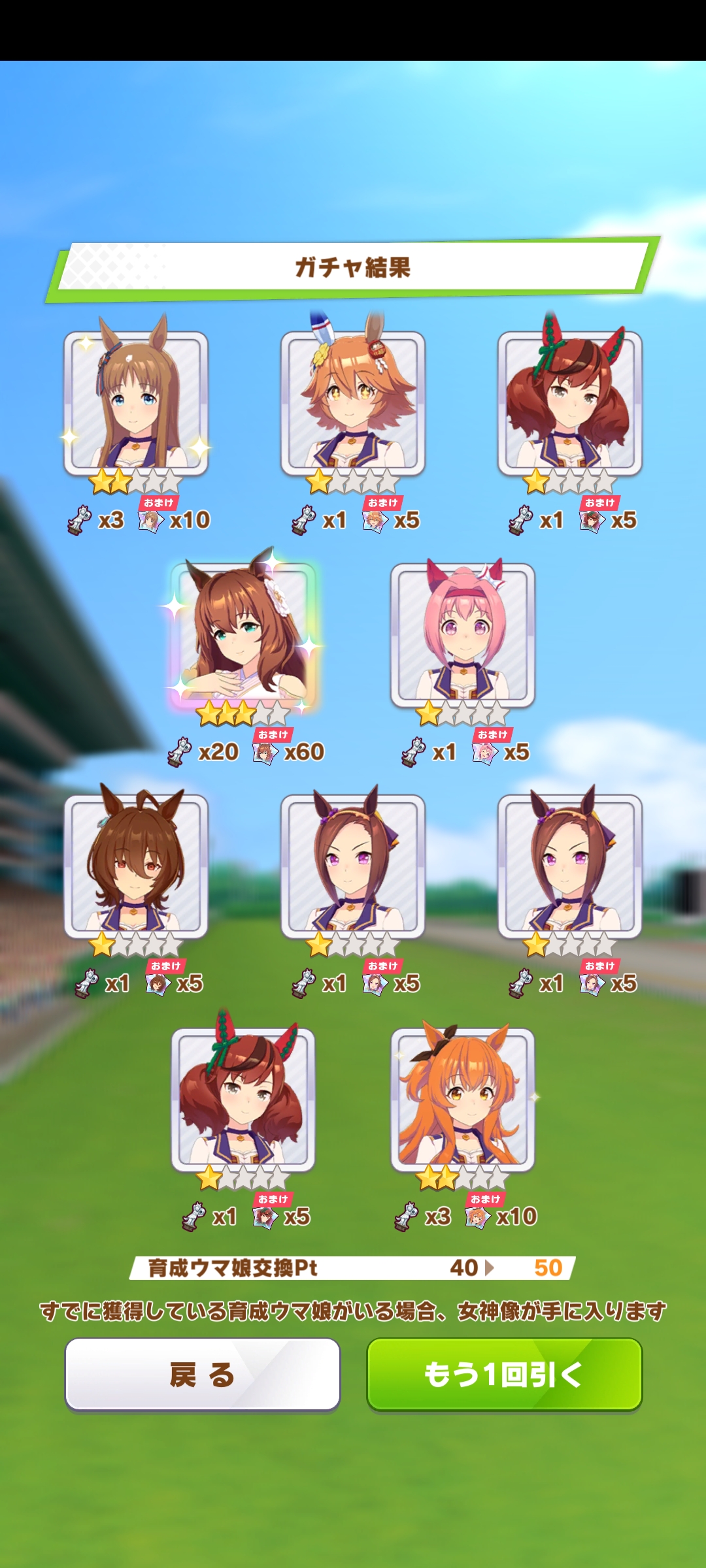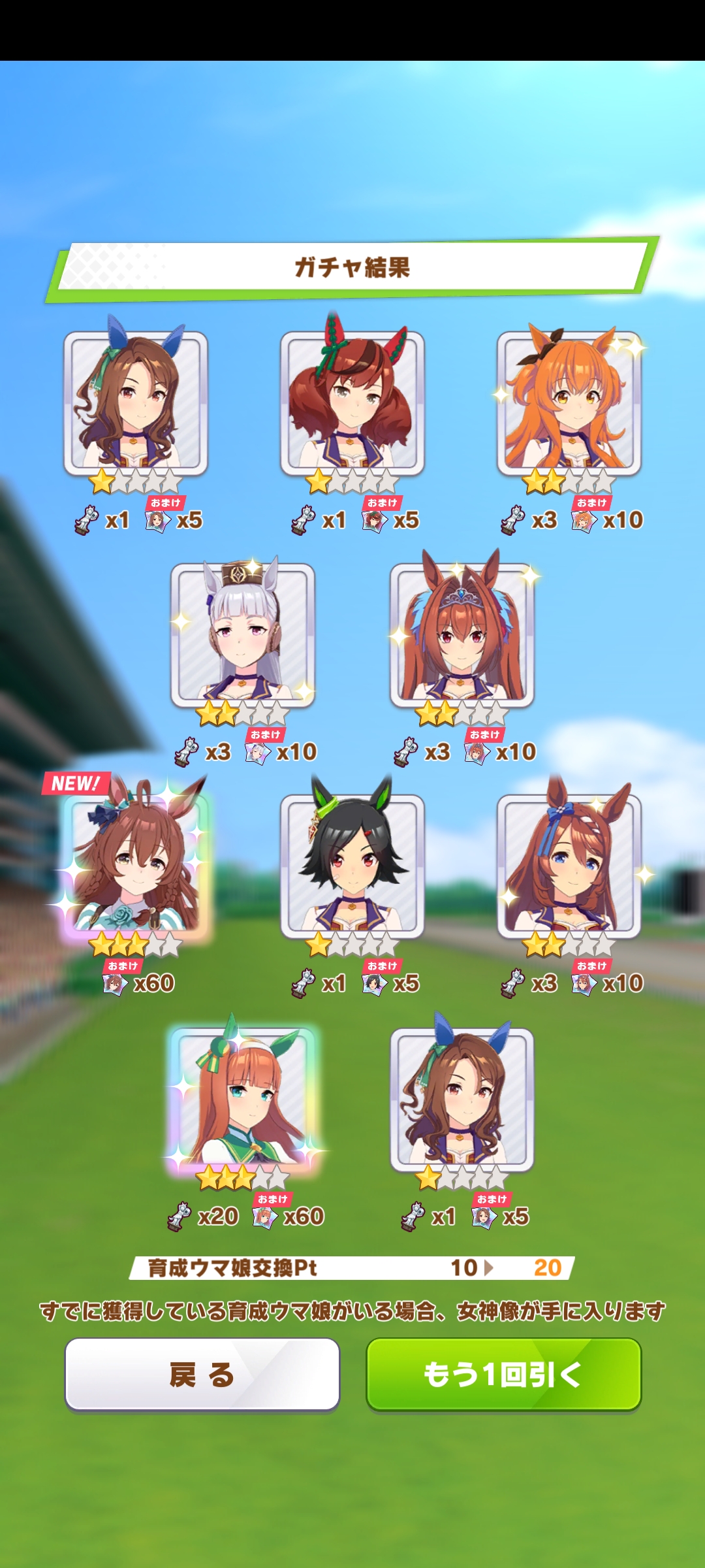 К слову о карточках.Игра хитрая залупа, ты закатываешься с идеей, пойду крутить лошадей, но это первая же ошибка новичка. В игре надо крутить карточки, которые состовляют основу при прокачки лошади в карьере. От них зависит, будешь ли ты с трудом накачивать А рейтинг или Эс, условно, рандом всё равно решает, но тем не менее, колода очень важна. В идеале, ты закатываешься через неделю и крутишь баннер карточки Китасан Блэк, которая имба и накручиваешь её 5 копий. Хотя бы 3. А дальше делаешь что хочешь уже.
