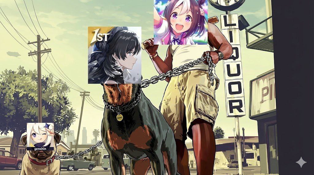 Самое обидное что чарактеризация персонажей тут не плохо сделана, по сравнению со средней температурой гача-слопа, после пары катсцен с Манхэттен Кафе у меня даже слезы подступили от мелочей, так как у меня у самого в детстве была привычка воображать во время поездки самого себя едущего рядом всякими интеерсными способами... Захотелось плакать. И музыку бэкграундную анимеслопчиковую сделанную под американизированный рок я тоже люблю. Но я просто не могу понять какие кнопки жать... Как я понимаю тут даже нету "левелов" которые можно прокачать чемпиону, большего мой мозг просто не понимает.