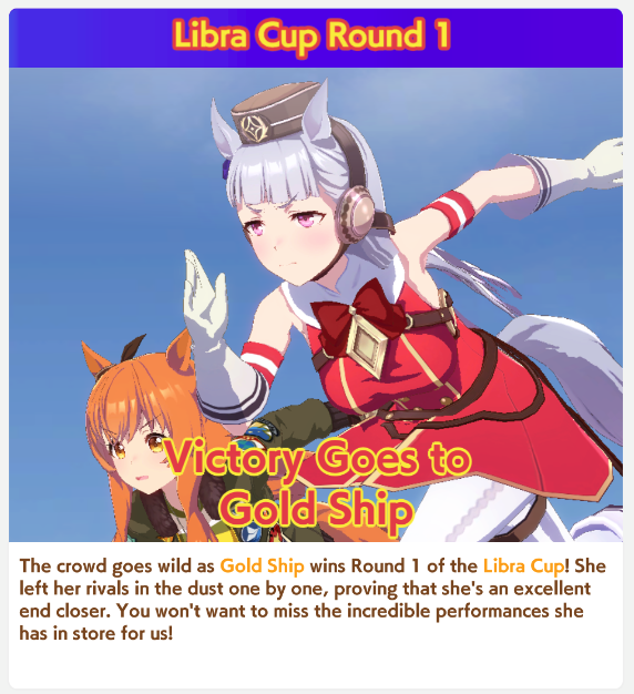 >>6047587 Да вроде жить можно и остальным, в первом раунде то. Дальше будет сложнее. А Огури на длинную дистанцию не очень, у неё уникальная относительно слабая на длинных.