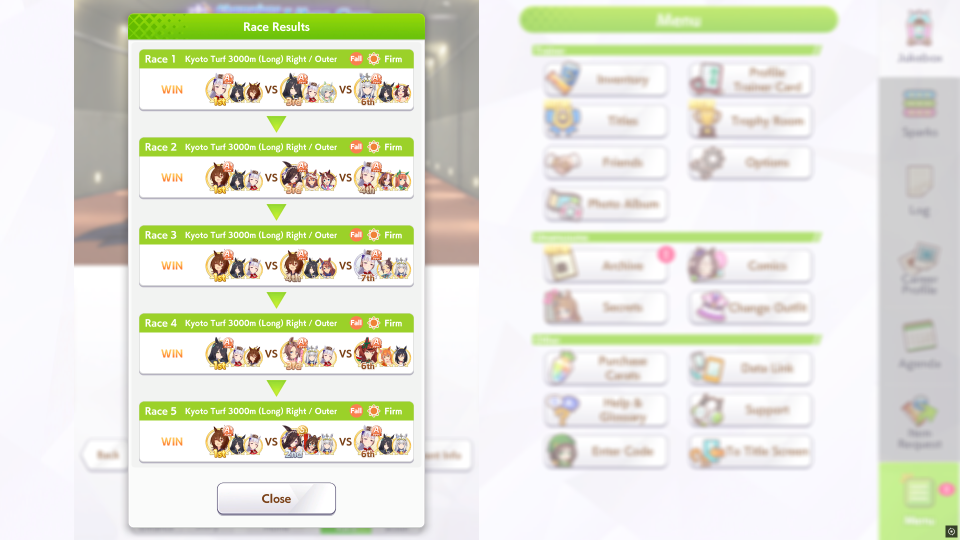 Что-то сегодня жёстко напроигрывал. Бедная МакКвин в плохом настроении больше половины забегов, а остальные что-то не хотят особо включать свои восстановления судя по дистанциям. И оппоненты не сказать что сильные, такое же как вчера примерно. Казино прокрутило меня в общем.