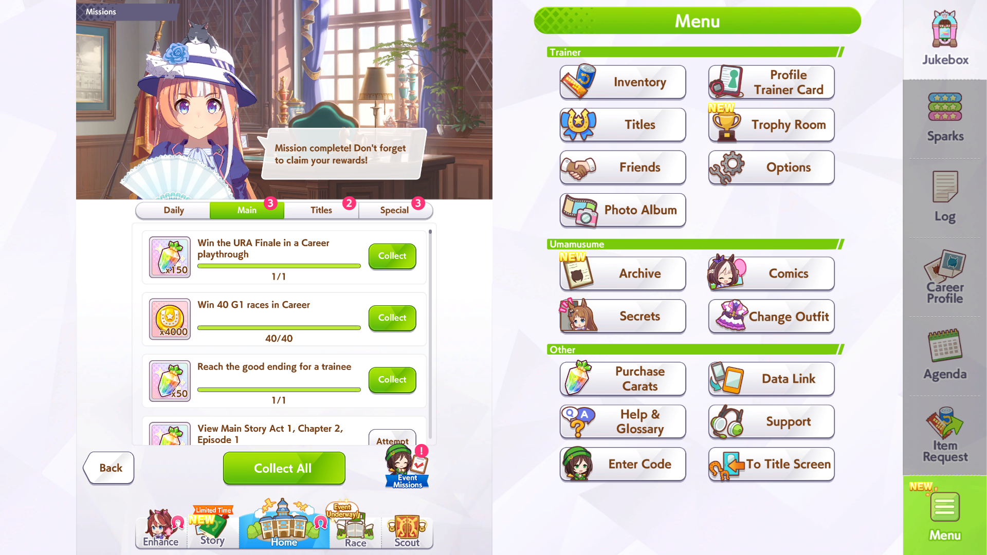 Алсо там первые 4 истории как бы показывают о том, что было перед тем, что в режиме карьеры, и являются как бы последовательно идущим сюжетом, как тренер с лошадью познакомился и заключил контракт. А с пятой по седьмую истории уже показывают всякое более позднее, и не очень связное (типа например как в летнем лагере уединились в лесу и занялись тем-то и тем-то). Так что не стоит ожидать, что там будет какое-то прямое непосредственное продолжение первых четырёх стори. Но именно истории Кафе я не читал.
