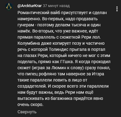 Но при этом мне самому некогда и не очень хочется это все проходить. Вот если бы мне лор напрямую в мозг закачали, чтобы я мог в треде его обсудить или на ютабе фанатские теории посмотреть - вот тогда был бы да, кайф.