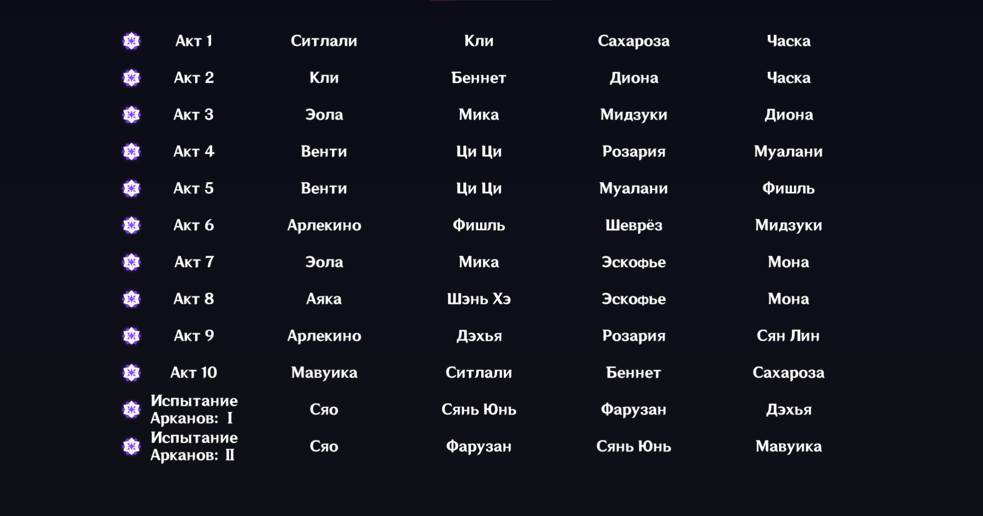Джинн - бафф скорости атаки Розария - срез физ урона Мика - скорость атаки + крит физ урона (с6) Далия - скорость атаки Эмбер - скорость атаки (с6) Лиза - сред защиты, единственный электро перс, который нужен для реакции сверхпроводник, дающий срез физы. Эола - физ дпс