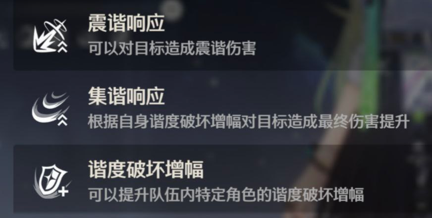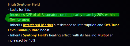 Китайский: 干涉标记 附近队伍中所有角色对拥有干涉标记的目标造成的伤害提升:莫宁自身共鸣效率大于100%时,每超过1%的共鸣效率计算为0.25%的伤害提升,上限40%。 (Метка интерференции Повышает урон, наносимый всеми персонажами отряда поблизости по целям с [Меткой интерференции]: когда собственное Восстановление Энергии Морни превышает 100%, каждый 1% Восстановления Энергии сверх этого значения рассчитывается как 0.25% повышения урона, вплоть до 40%.)