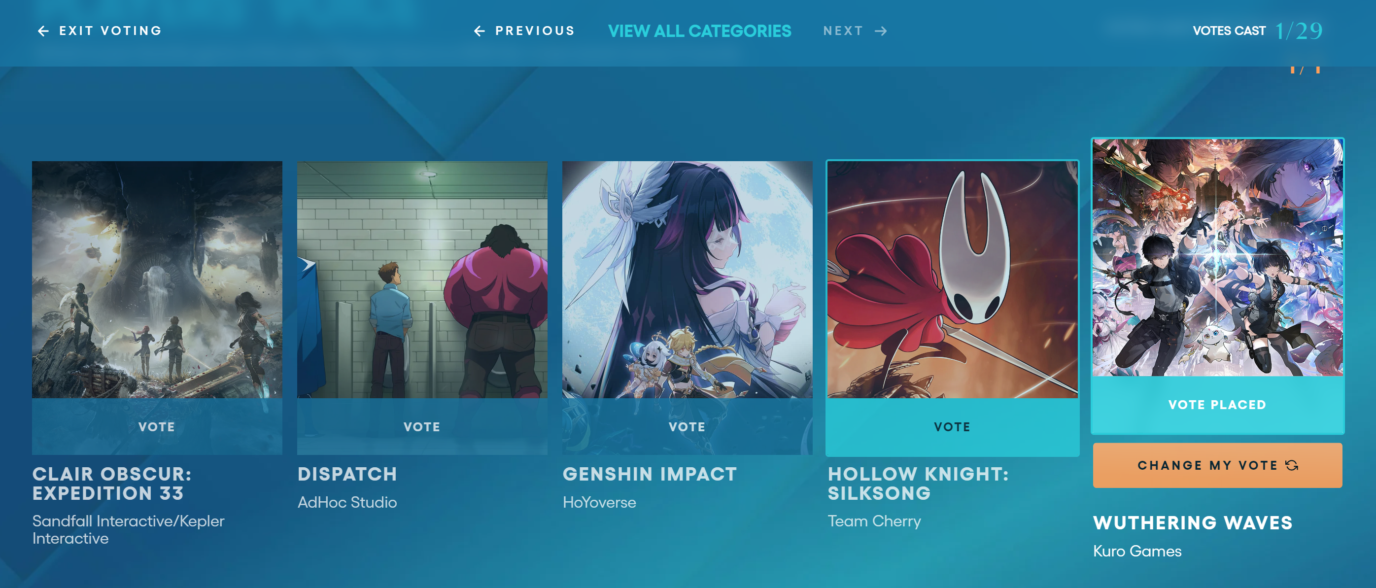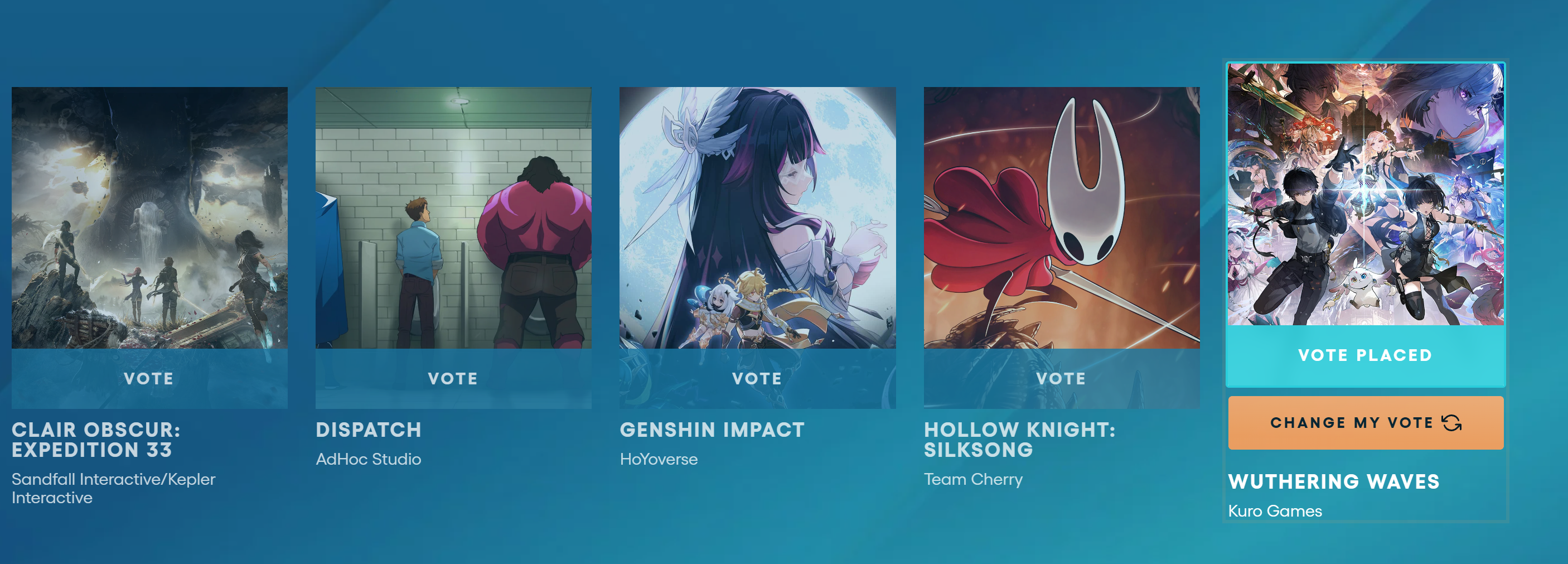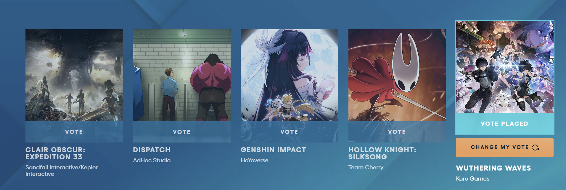 >>6023750 блин это по сути все игры за которые я отдавал голос раньше, кроме геншина к сожалению скорее всего клер обскур победуит,я бы казал даже без вариантов а вот чему я буду удивлен так это победе геншина - это говнище в этом году просто пиздец как много хуев от аудитории приняло