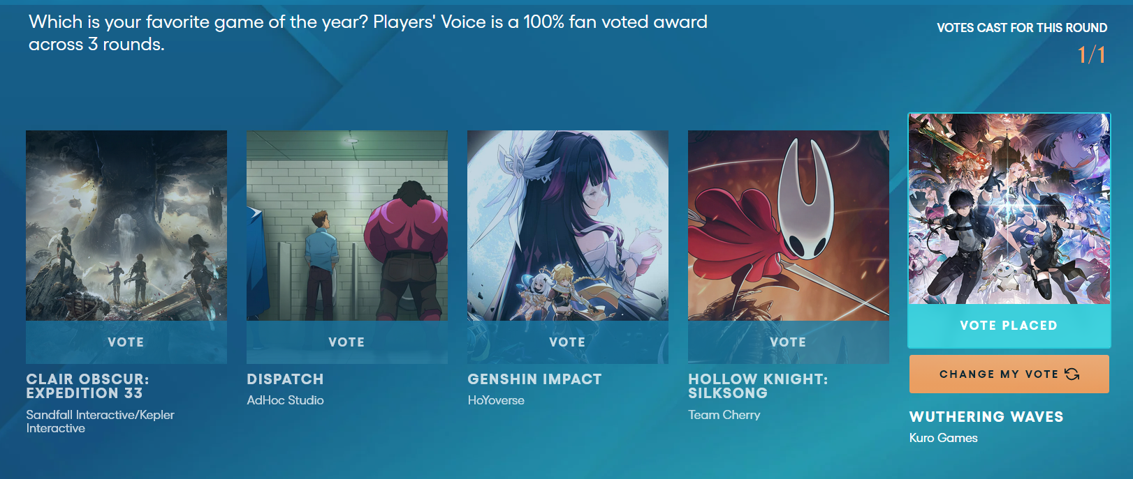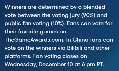 >>6023813 В подковерные интриги и проплаты можешь верить. Но по официальной позиции это голосование фанов. Остальные награды, да, 10% от голосов фанов. Но отдельная награда плеерс войс = 100% голоса фанов.
