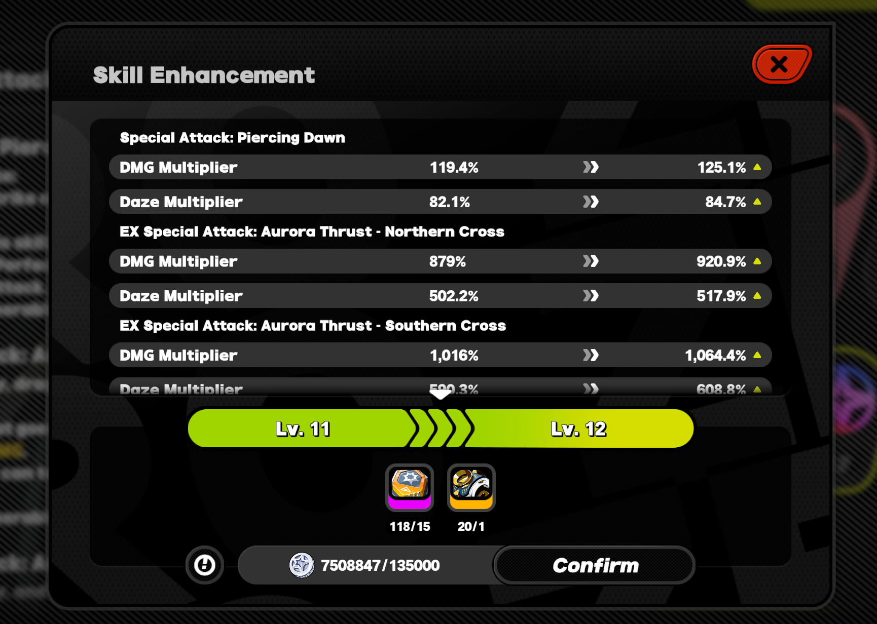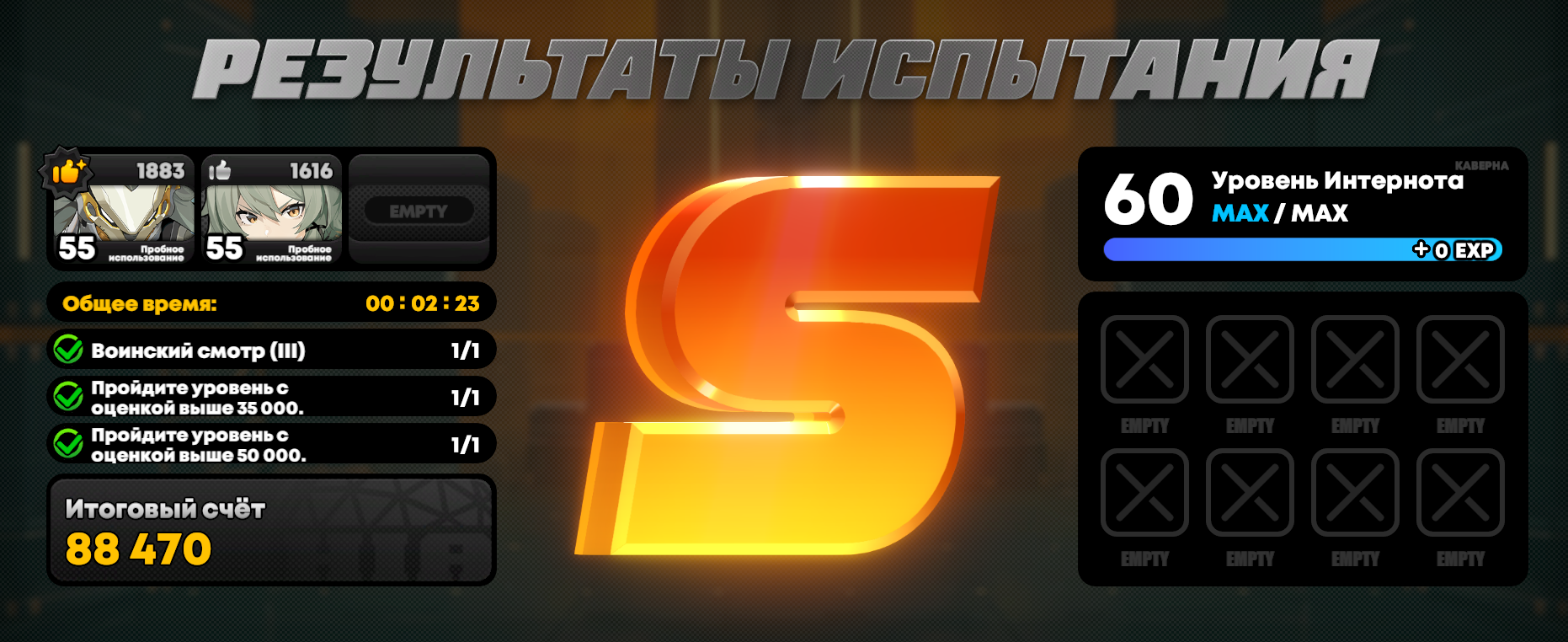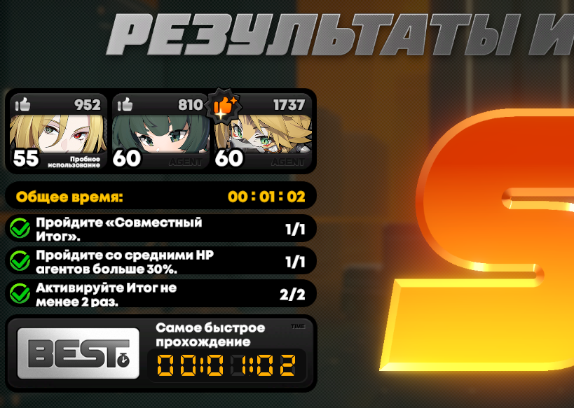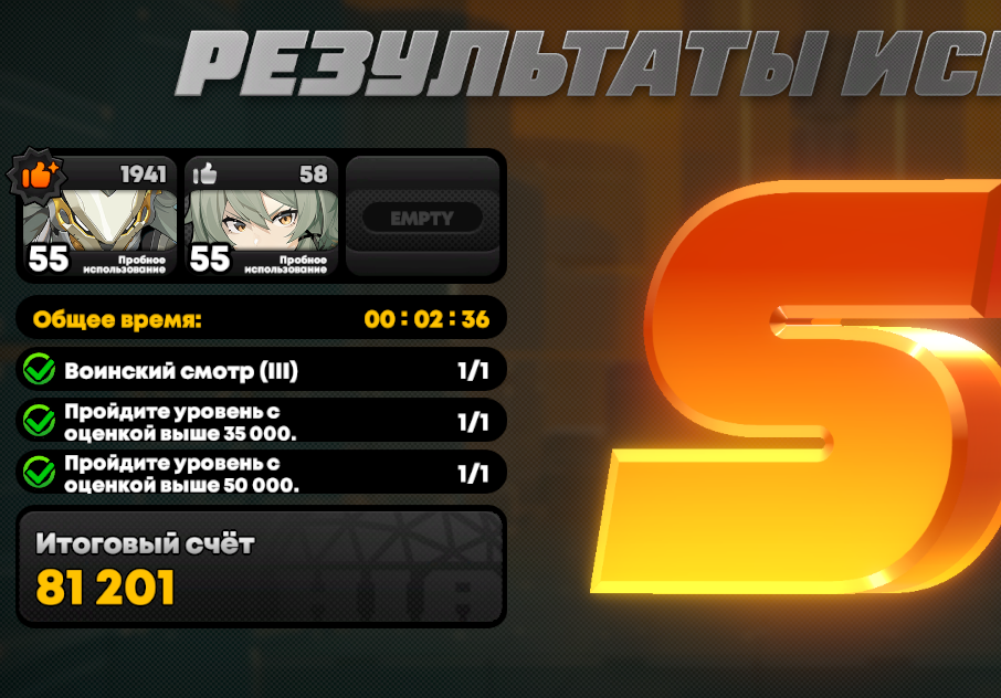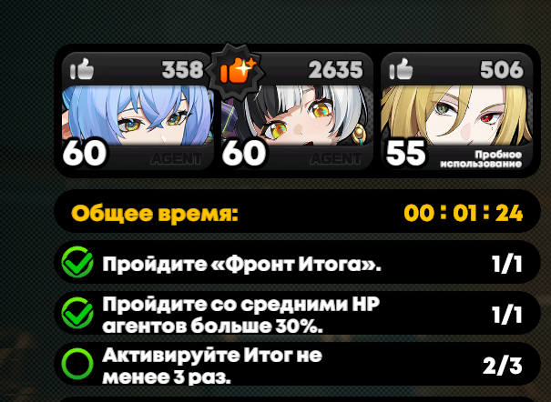 В первый раз не получилось активировать "Итог" 2 раза. Во второй кое-как Над жирнее мобов пихать. А то им даже от саппортов плохеет. Хотя там криты не сильно злые у Люси и Диалинь