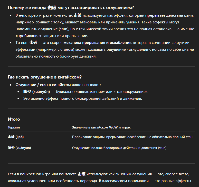 >>6043018 На моем скриншоте оригинальное китайское название. Не вижу в перечислении слова "оглушать" (to stun). Там вроде внятно написано "ломать оборону"