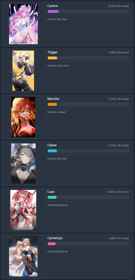 Вува, может, и не игра года из номинантов 33 явно лучше как минимум, а диспатч не игра - но она хотя бы развивается в положительную для игрока сторону. А за что нам ГОТИ давать? За Нефер, которая на с6, но без Лабубы, дамажит меньше, чем с0, но с Лабубой? За мобов с двойным ХП? За надриск с мобами, которые пиздятся исключительно одним конкретным чемпиком - или +3 кост пачкой? За перья для переточки артов - ценой скрученного В НОЛЬ дропрейта артов в данжах?