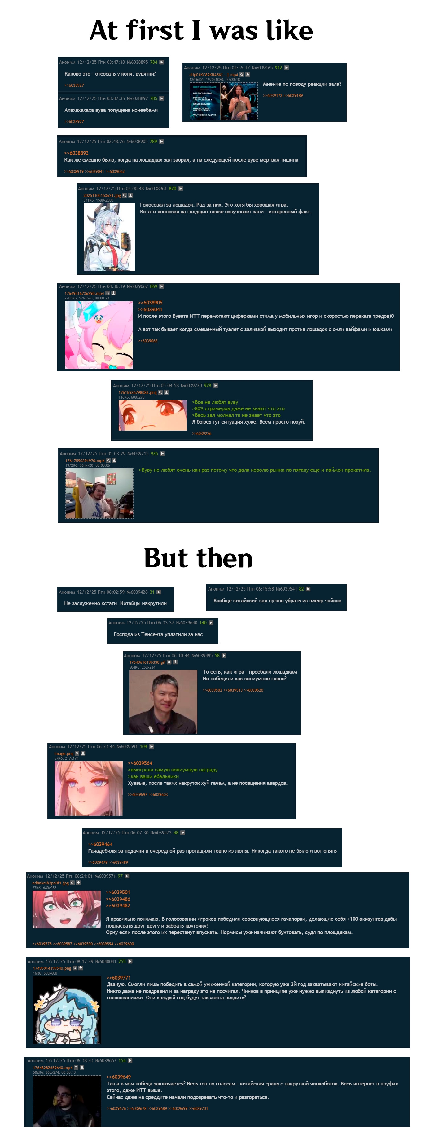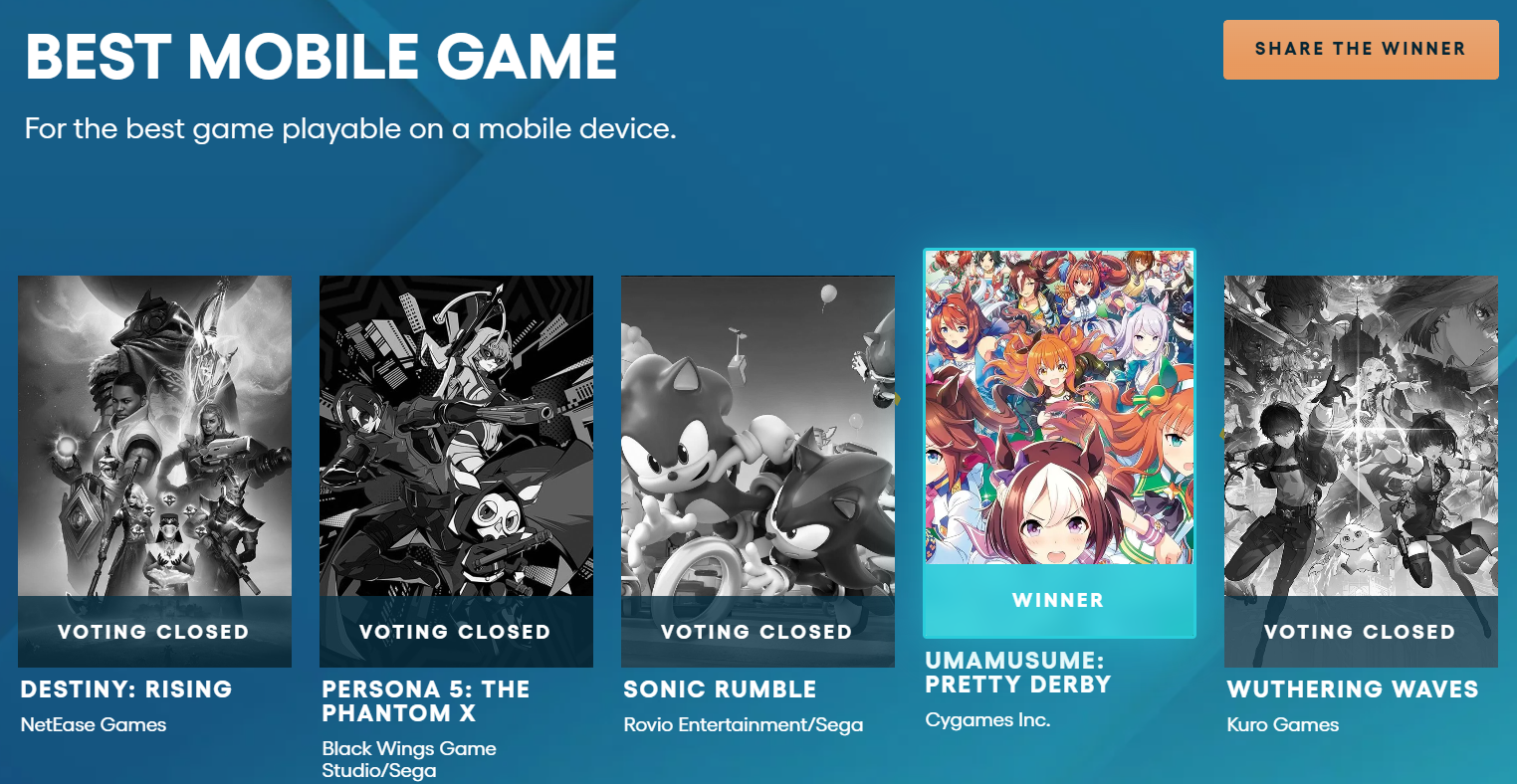 Вообще надо обратить внимание на действительно значимую и сочную категорию - туда гачи не пустили - Best ongoing. Вот победа в этой номинации была бы действительно триумфом.