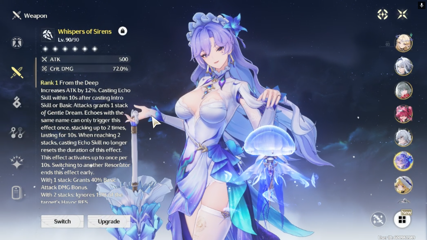 Лазерный рассекатель: Атака увеличена на 12%. После нанесения урона врагу в состоянии [Вмешательство гармонии], бонус к урону от навыка Резонанса увеличивается на 24% в течение 3 секунд. Повторные срабатывания обновляют длительность.