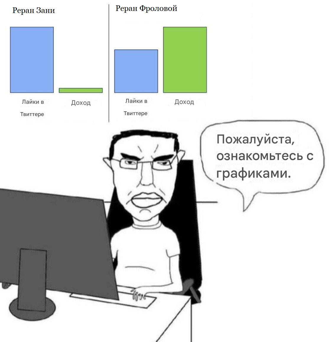 >>6043588 >ту же Зани он почти успел перебить >за сутки Стоп, не понял, так у Фроловой же мало артов на бурах и лайков в твиттере. С какого хуя ее крутят лучше?