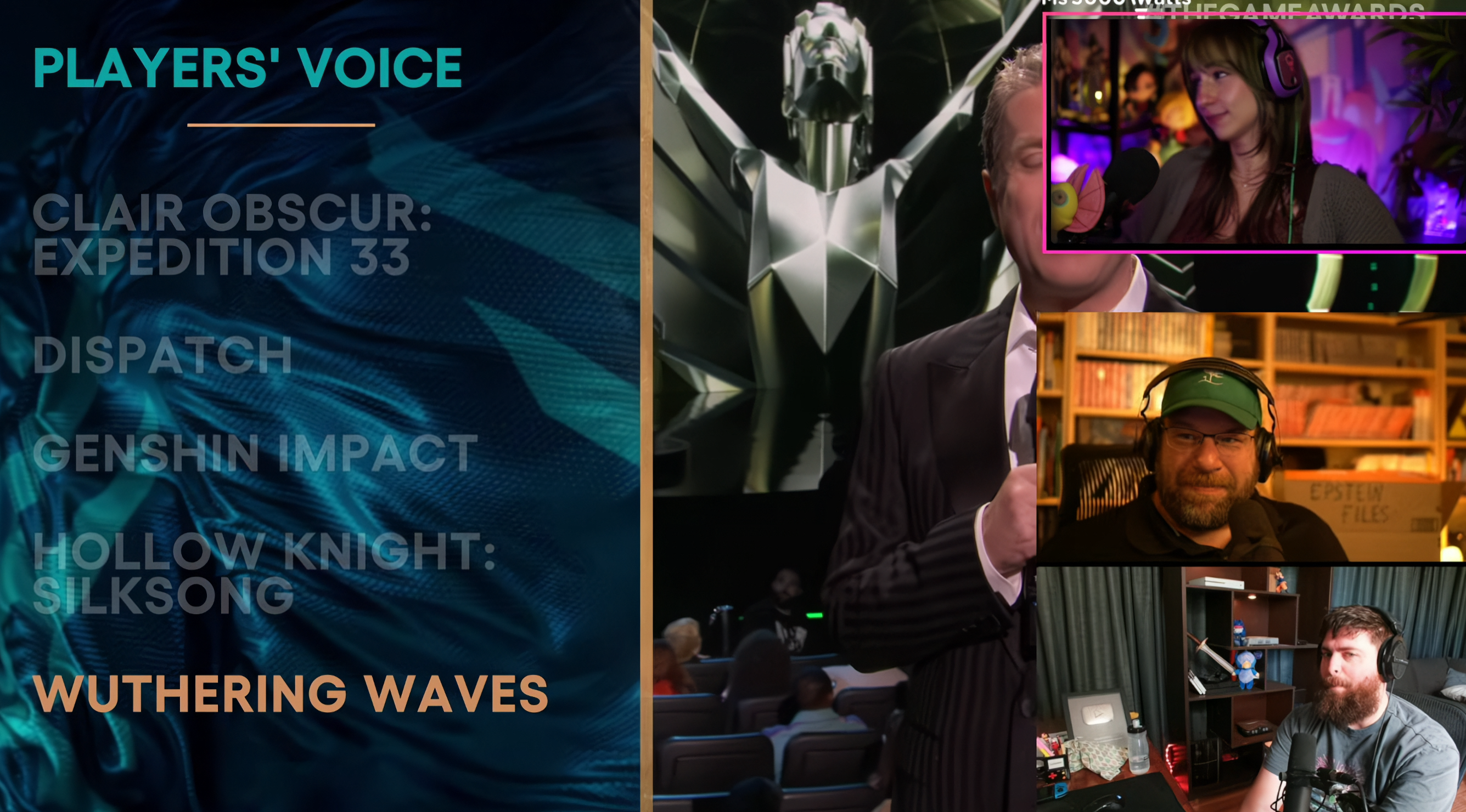 Всем привет, видели результаты TGA? Это же отстой!!! Всё проплачено. Wuthering Waves выиграл "Выбор игроков"? Они че, серьёзно? По пабликам ходят графики, где у WW дикие скачки голосов в новые раунды. У нормальных игр типа Экспедиции ровная линия. Так не бывает епт...