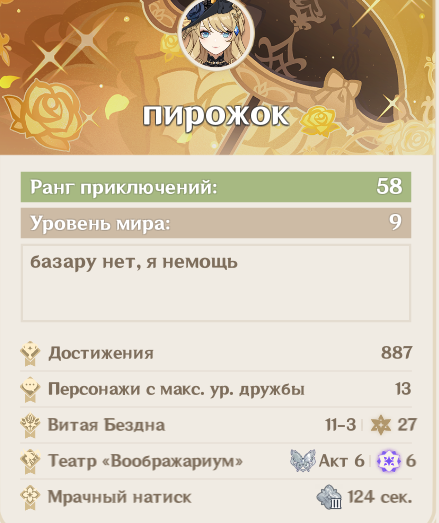 >>6044899 (OP) Смотрите, сосачеры. Даже разработчики Genshin Impact признают меня гордым истинным королем. Вы видите королевскую корону над моим персонажем? Можете сейчас обзавидоваться.