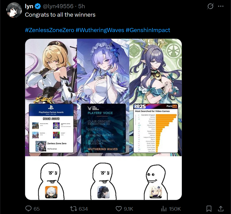 Тут забавная ситуация, что Геншин в пике своём стал ну оооочень жирным проектом в медийном плане. Это крупнейшая гача во вселенной, на минуточку. И загвоздка в том, что последующие игры - это в той или иной степени знакомые с Геншином игроки. Кто-то совмещает, кто-то отвалился в своё время от Генша, но в целом позитивно настроен к подобным играм и Зетки и Паровоз их привлёк. Вот на последних мне кажется и расчёт.