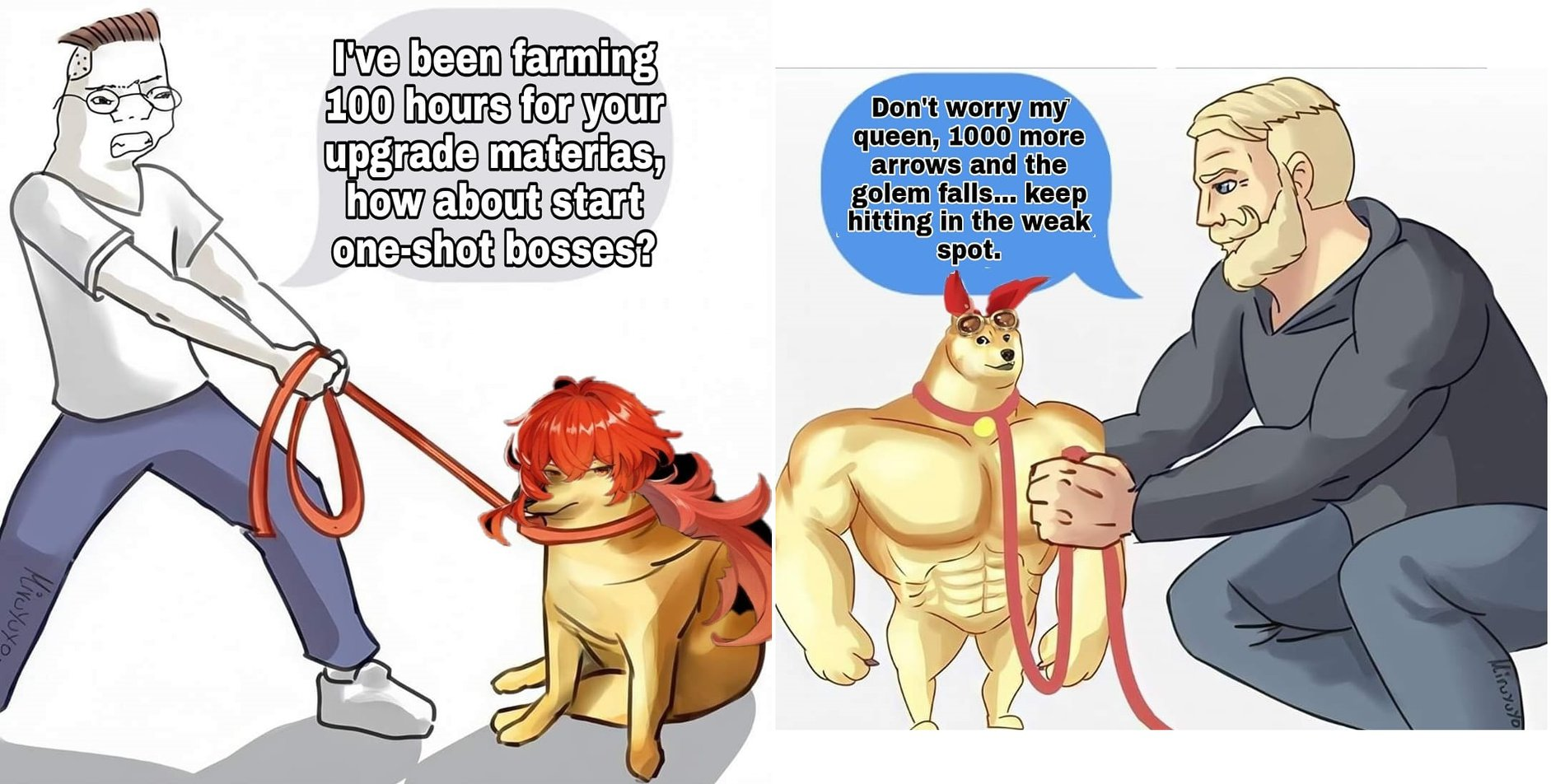 Короче вопрос знатокам других гач, а есть хоть одна, где всё удобно? Знаете, я вот подумал, вот что меня реально бесит, ради чего я бы искал другую гачу: во-первых это надмозговые переводы и нейрокальные описания, уебанское скрытие формулы дамага и механик игры, например почему-то я должен гуглить сколько тиков дамага в ульте Эмбер. Или переодел часы с АТК на МС, ну и где посмотреть какой будет урон хотя б по хиличурлу? Нету нормального юнит-тестера. Почему я не могу понажимать кнопки за с6 арлешку или там взять пачку и посмотреть сразу как она бьёт босса с 12-3-2, почему я должен для этого пройти весь этаж сперва? натиск частично фиксит проблему, но тоже нельзя взять пачку и настроить против неё уровень рассольника. по сути я вынужден смотреть каких-нибудь протыков и сливеров в надежде что они затестили что мне надо Уебанская система экспедиций - если даже нельзя отправлять в экспедиции по кд, даже если я оффлайн, то почему хотя б не сделать галочку чтобы они обновлялись при входе в игру? Типа окей, я согласен собирать цветки и лут с мобов, у смолы есть кап - окей, но бегать каждый раз к Катерине это пиздец скучно. Ну вот в какой-нибудь что-нибудь из этого пофикшено?