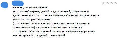 ты узнаешь новые слова из лурка и других петушиных углов для неполноценных куколдов, которые дрочат на интеклнатккальтуру, вместо того тчобы формировать её, я узнаю новые слова когда сру в тредисах и получаю бан на день по причинена щитпостинг/нерелейтед/оффтоп энное количество лет назад