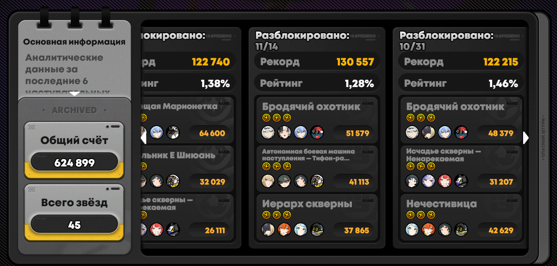 Чуть чуть улучшил счет, теперь я продвинулся в топ с 32% аж в 29, вау наверно Еще попутно чекнул историю мясного штурма, ебать я зверь нахуй, спасибо разрабу за это небольшое нововведение, могу теперь еще яростнее дрочить на свои потуги