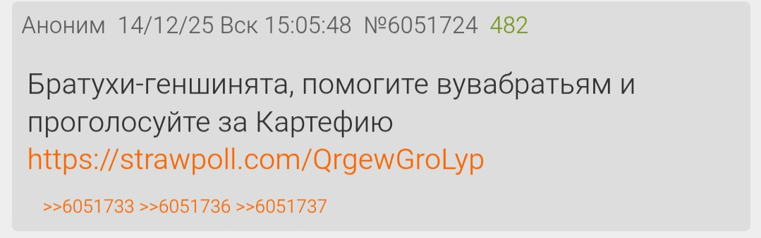 >>6051335 Первое - я не понимаю что ты хочешь вообще услышать и нахуй ты тащишь сюда посты из телеги.