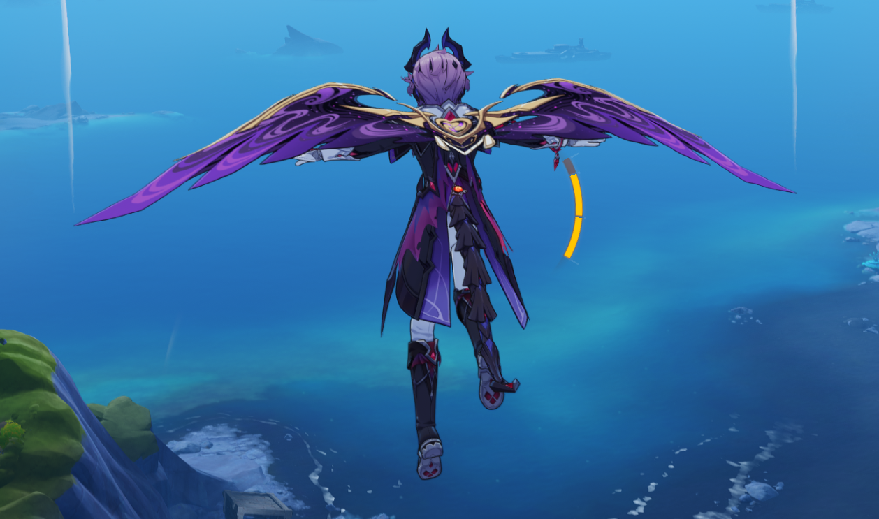 Какой же Ляо ленивый падисар. У персонажа буквально есть собственные крылья, которые он даже в своих анимациях активно использует... но отказывается использовать при парении и цепляет стандартный планер. СЭКОНОМИЛИ.