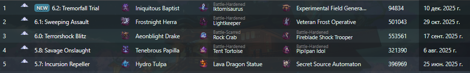 Выбил с четырёх смолы в натиске целых три потенциальных арта для кобылки. Сейчас буду мощно их качать. Пирокубками просто хвастаюсь, не завидуйте сильно.