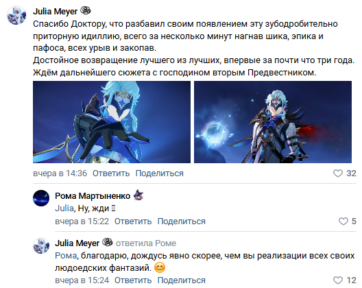 Дотторе мразь, но отрицать, что он единсвенный предвестник, оправдавший ожидания, а не скатившийся в говно как клумба и сандроне - глупо. По сути ток Дотторе и оживил эту душную сюжетку. Объебал всех вокруг, включая шабаш.