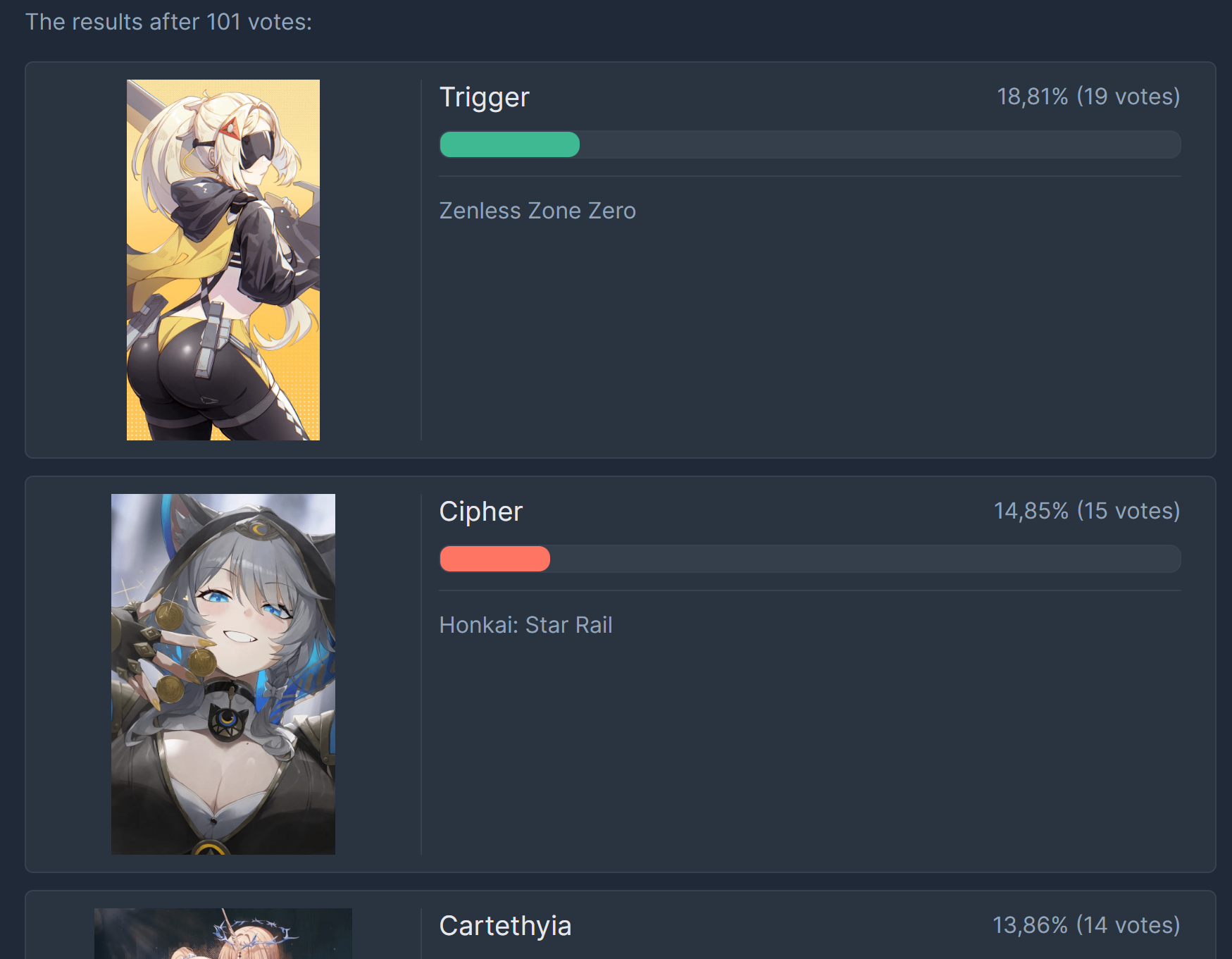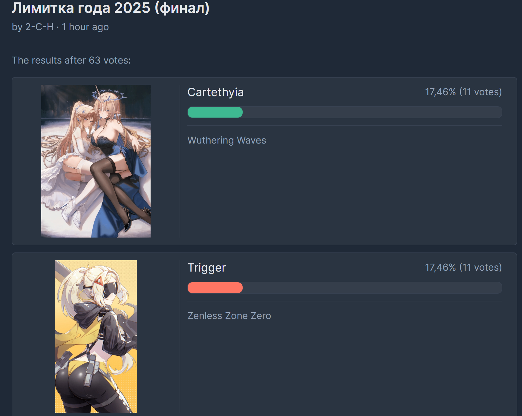 Гайс, хотел бы услышать ваше мнение кого крутить. До анонсиков думал Фросю с Кантареллой, обе нравятся, ну и для первой сигна мастхев как я полагаю. До этого крутил Чису, проиграл 50 на 50, по итогу выбил Фибичупи, потому что мне в тиму лучше заходит. Из Тим как раз Зани, Чупи и Верина/Шорка, и 2 - Августа, Юно, и Верина/Шорка тоже. Хотел выкатиться в хавок 2 персами, ровера к ним 3 поставить условно. Но после анонсиков... Захотелось Ринне (по японски понятно как её зовут, а на англе - Лини? Лайни? Лайне? Линае? Ляни? Лайнаи?), вроде по нахрюкам увидел, что подходит к Августе с Юно, если что - нового 2 перса с патча зароллить тоже не против. Эстетически Фрося с Кантареллой ближе, во 2 случае Ринне со значительно большим перевесом, чем вторая у меня. Сейчас у меня 50/50, со всеми фриспинами за награды 50 откручено. Если Некст патч ждать - всех спокойно ф2пшно с подпиской заберу, если сейчас роллить - донат за 7к минимум (мб в стиме карточки наберутся в сумме на такую сумму) и нет гаранта на некст патч. Ваше мнение?