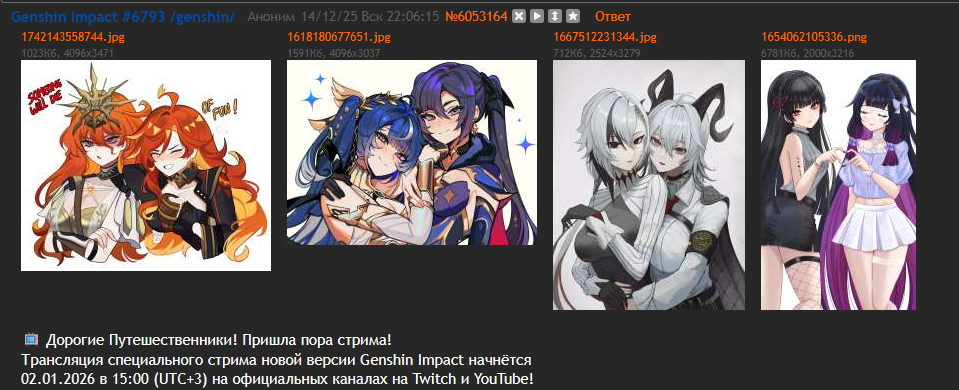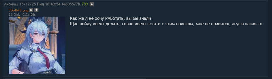 >>6049859 Тут скорее надо спрашивать сколько лет тебе. Ну или ты там из нулевых капчуешь когда у местных пивных пацанчиков считалось зашкваром разного рода милота. Хули ты вобще забыл в мире маняме и гачакала?Ты пролапсенок чтоль? Ну их тех что вкатились в наши края во времена ковида и нормисного хайпа по геншу.