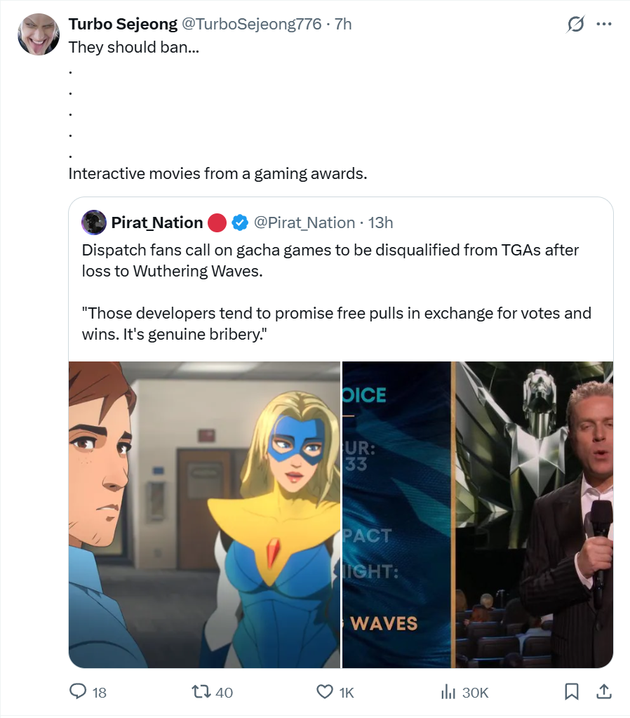 Я бы вообще запретил на ТГА любую 2д парашу вроде диспатча, холоунайта и прочей хуеты. Как показывает практика весь этот инди-слоп живет 3-4 месяца после чего умирает и все про него забывают навсегда.