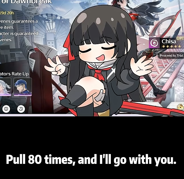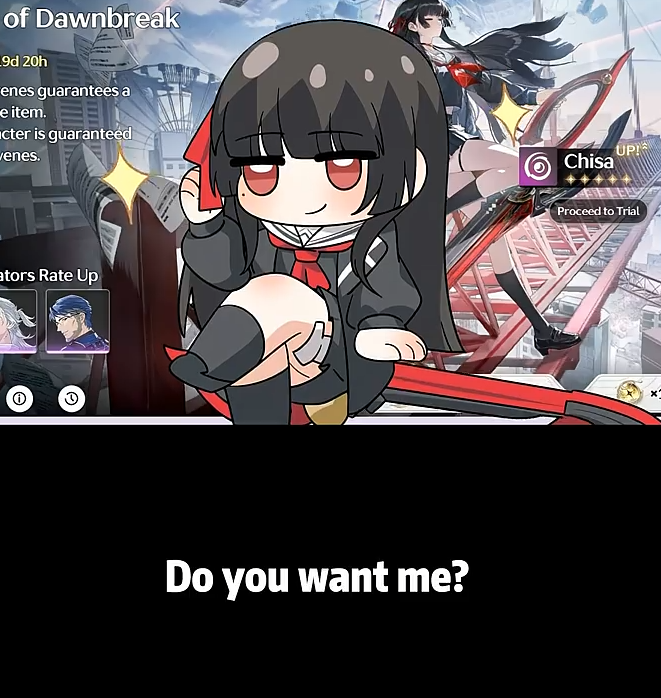 >>6055411 еще можно добавить рулетку с эхо, где ты за валюту крутишь эхо и перебираешь их для своих персов, но это для хардкорных гачагеймеров и минмаксеров такой геймплей потеряли, конечно...