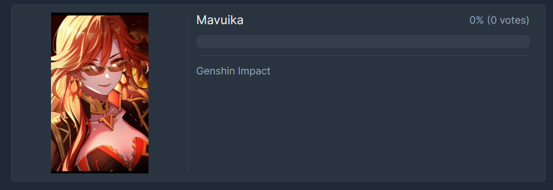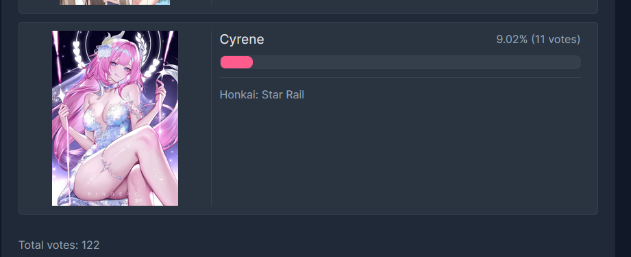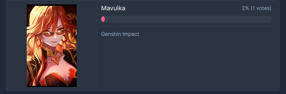 >>6051374 Манипуляция артами в голосование - это кал. Должны быть дефолт иконки чаров, а не выбранные кем-то арты, где чары в шмоте, который в игре вообще не существует.