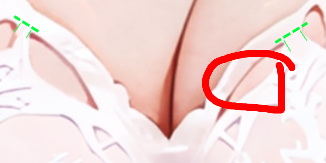 >>6054983 Поверхность левой сиськи примерно перпендикулярна направлению камеры. То есть, в данном случае она в проекции на экран имеет максимальную ширину и высоту. Из этого положения как бы ты ни крутил дырку, она не может стать более длинной чем когда ты смотришь на неё перпендикулярно. Но вообще с этими дырками там хуёвое качество фотки. На выше скинутой картинке видно, что у правой дырки там ещё какая-то лишняя полоса длится (пикрил), из-за которой на фотке выглядит дырка длинной. На левой дырке такой полосы в любом случае нету, так что можно сказать, что тут несимметричность в том, что добавлена эта полоса.