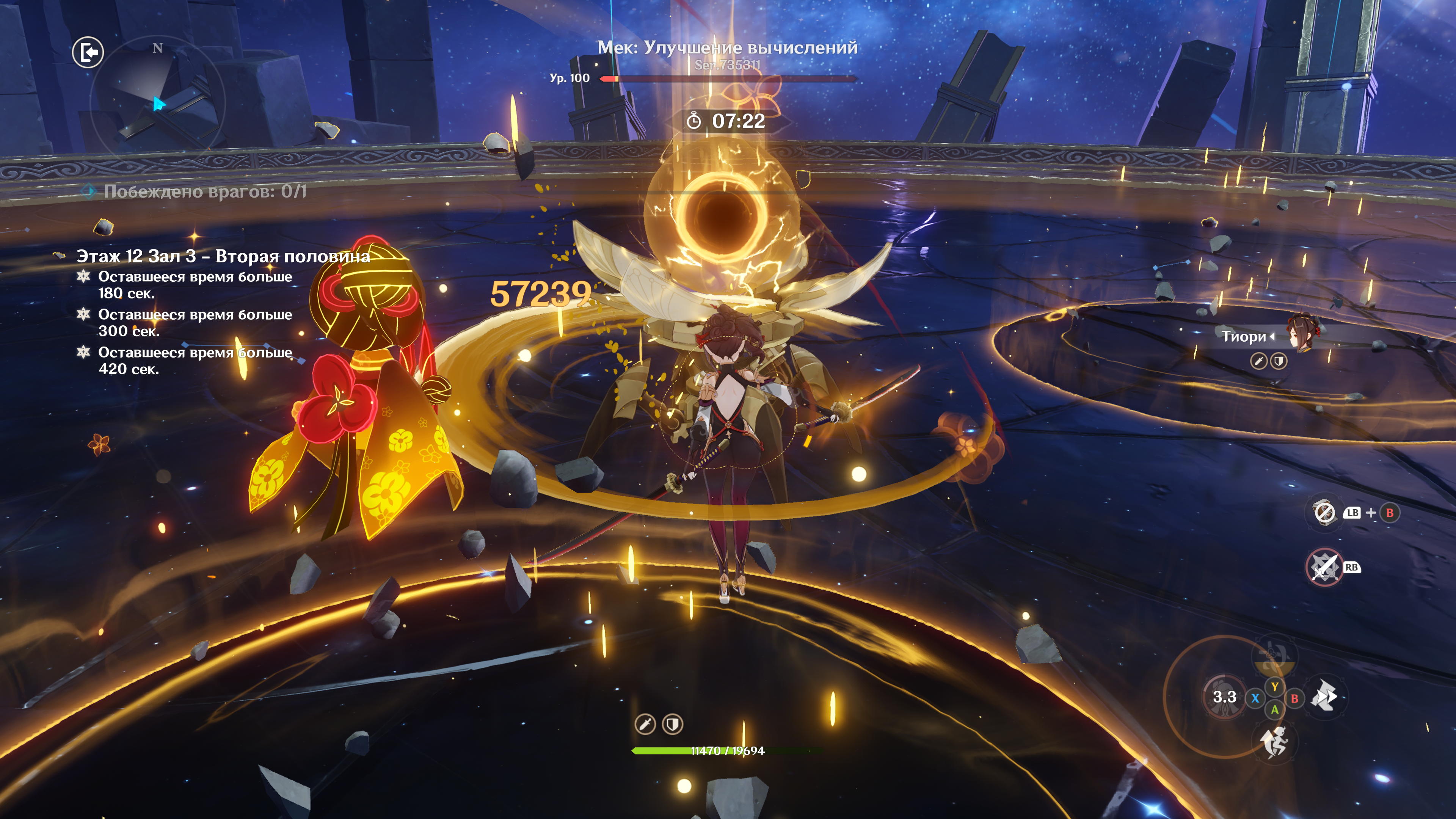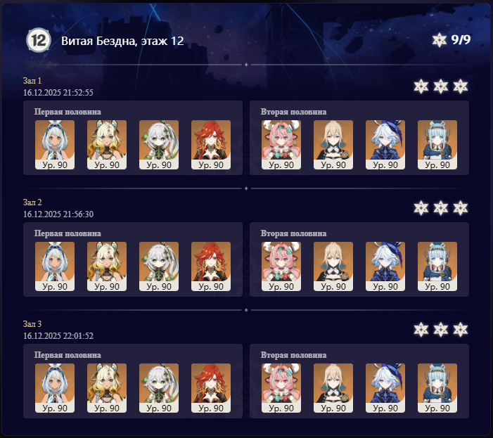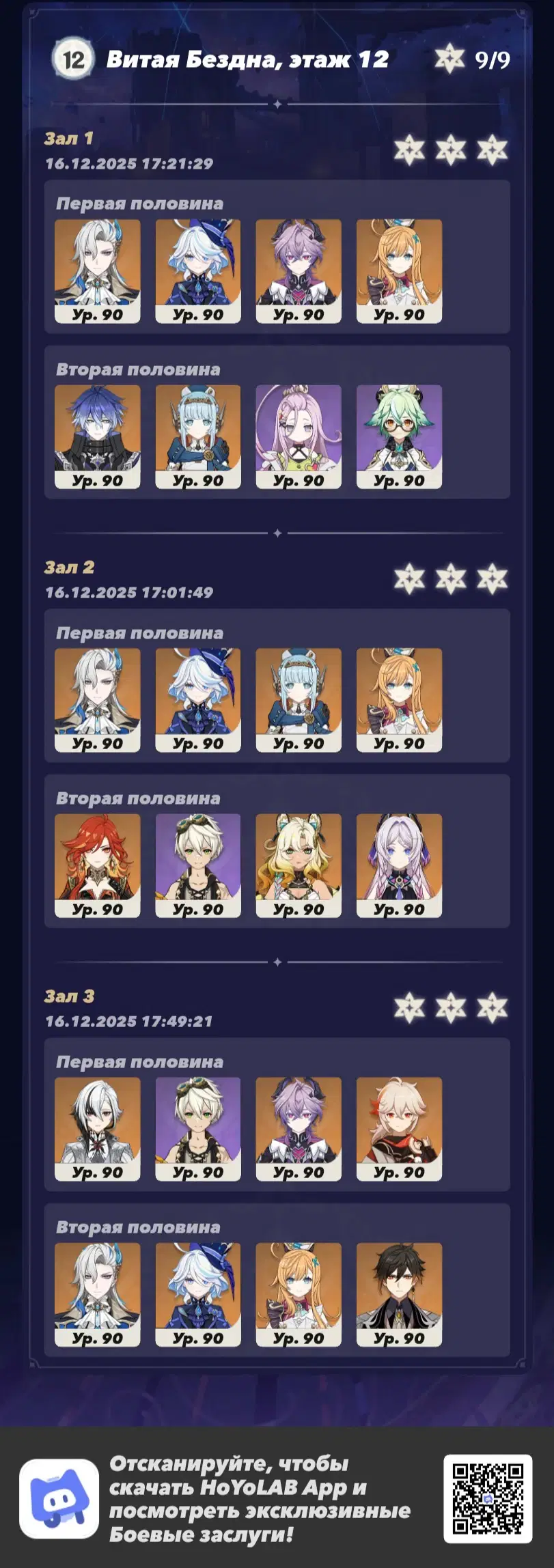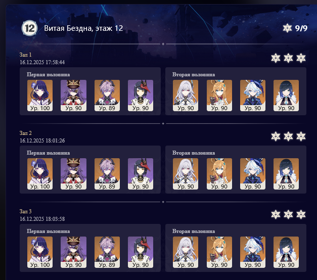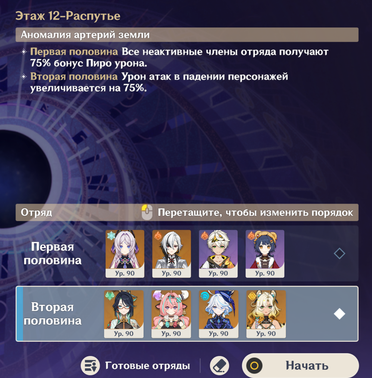 Пиздец, траил последний зал больше получаса. Так и не смог снести первому боссу все хп за один цикл, еле получилось добить через ульту Мявы в резист во второй цикл. Во второй половине Фишль сдохла в самом начале, пришлось без нее.