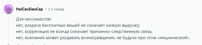 Насколько же у игры все отлично, раз так много халявы сыпят. Буквально в любой другой игре харчок в ебало был бы максимумом, ибо прибыли и так нихуя нет, не хватало еще халяву раздавать гоям. И только у нас настолько великая сверхприбыль, что святым разработчикам не жалко порадовать игроков подарками, на яхту и так хватит.