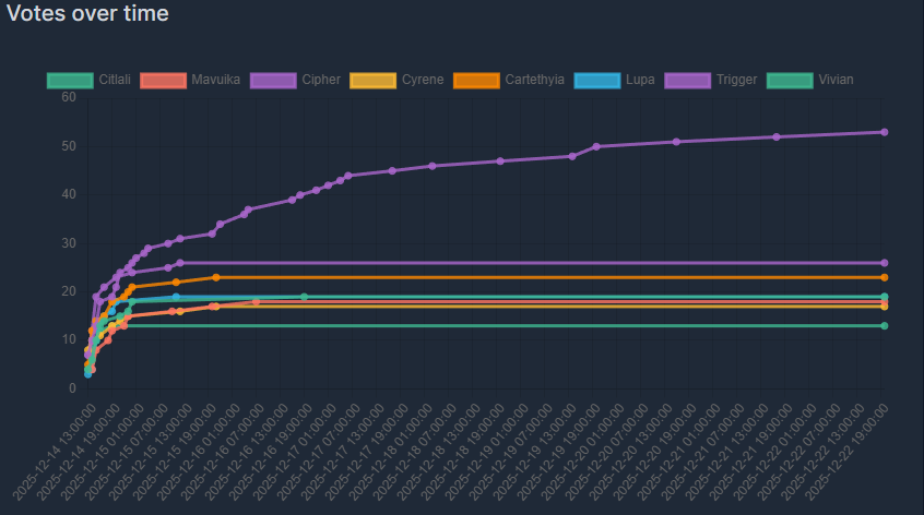 Всем понравился сюжет и патч с Фаеноном, в треде говорили о лорде Базеноне и как он спасает игру, утренник набрал по факту даже больше Кастории. За пределами треда все так же были в восторге. То есть ляо должен был понять, что все ждут хорошего драматичного красивого мужского протагониста, всем нравится, их нужно больше, но он высирает вайфукал черкашный опять, мерзкий и гадкий, естественно все будут недовольны.