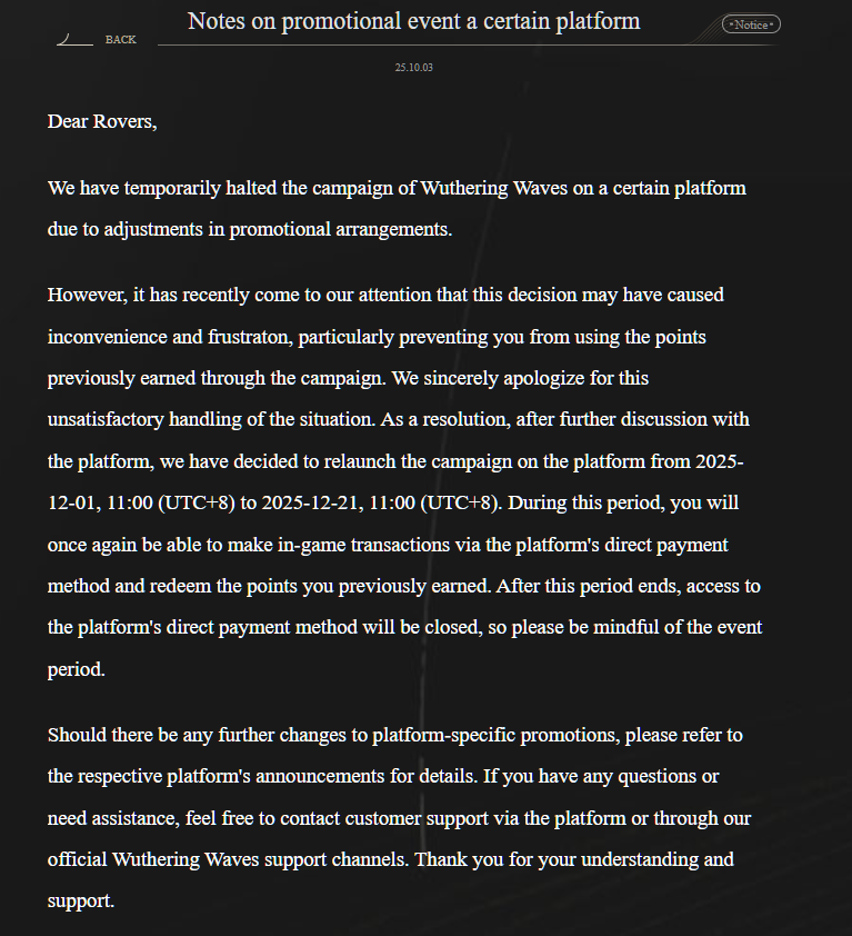 >>6086631 В августе была целая драма, в-основном в Японии и куро прямо сказали соглашение с егс временное, но косяк наш, продлим чтобы всё потратить успели. Кто-то просто решил что продление вечным будет. Соглашусь что могли бы сообщение через почту и егс прислать что через недельку всё, тут косяк куро.